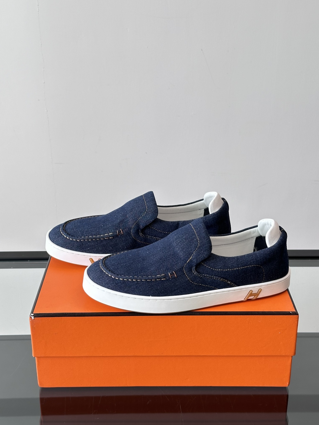 H家爱马仕 Kiddy免系带运动鞋 👟牛仔布和麂皮山羊皮免系带运动鞋,饰有标志性“H”细节。设计简约流畅,打造时尚都市造型。