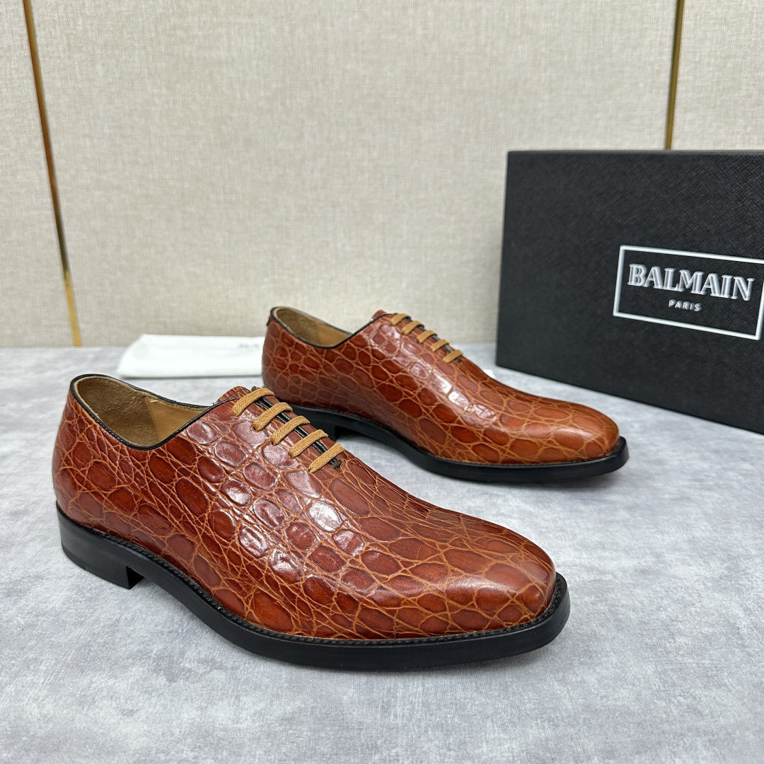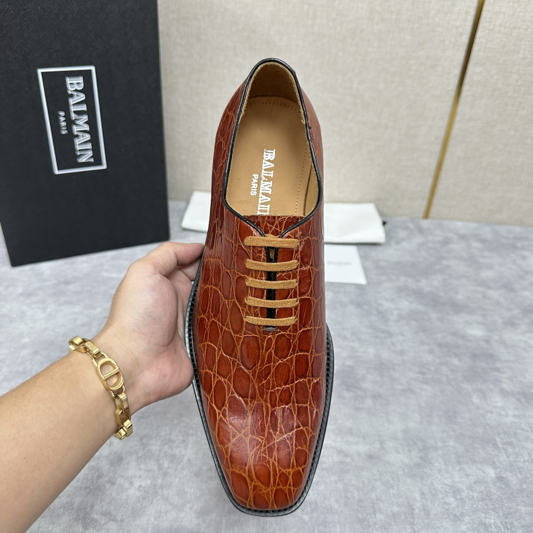 💋💍巴尔.曼新品 全新男士光面正装🤵皮鞋,采用进口牛皮压鳄鱼🐊纹制成,经典大尖头光面设计 内里水染小牛皮打造 脚垫饰烫银logo 标识 舒适亲肤 原版意大利真皮大底压花打造 后跟加入橡胶底片 增强抓地性能 🉑搭配各种商务活动 干练摩登之作 原包装发售!