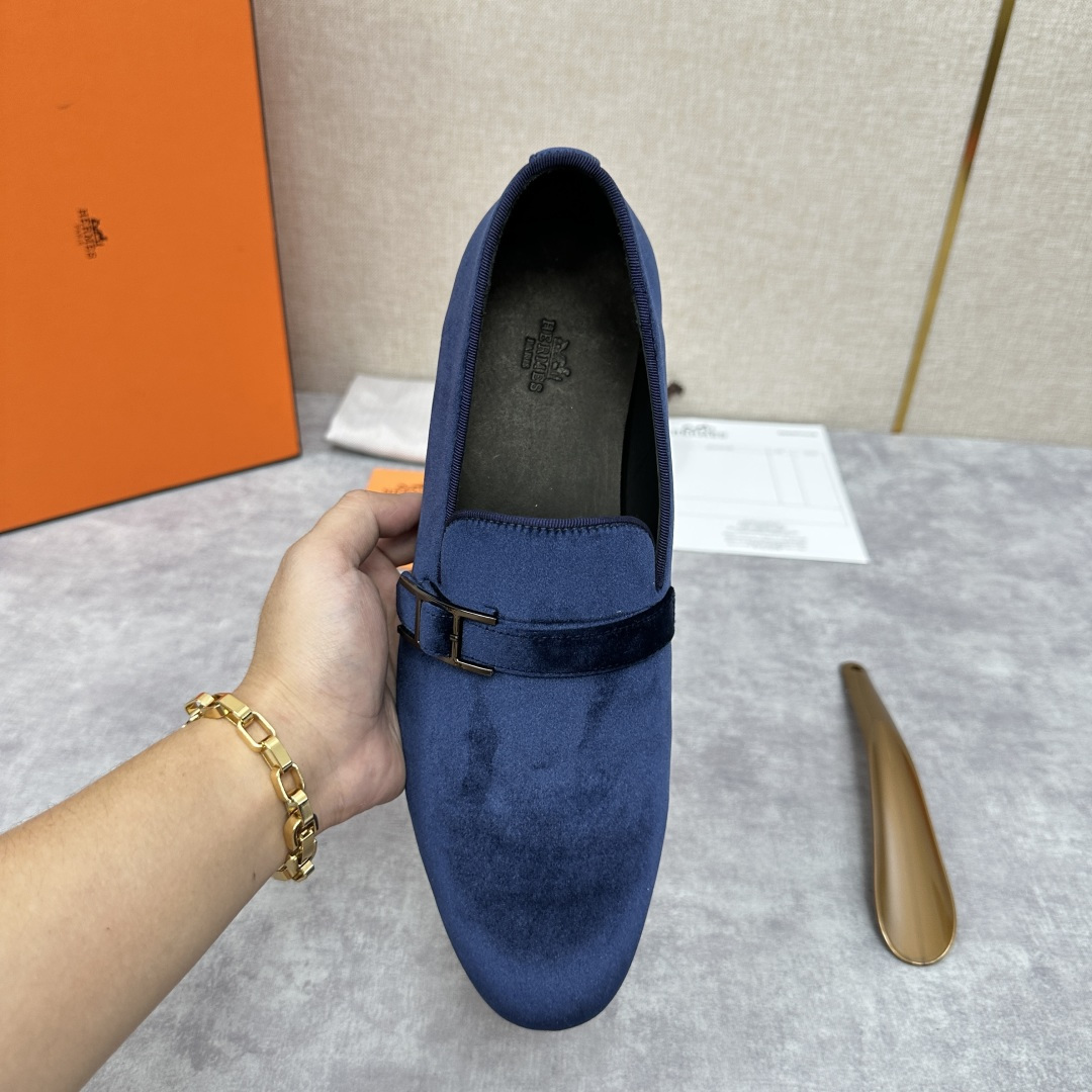 💋💍H家新品 Herme* 爱马-仕 julio乐福鞋皮鞋 官方RM B 11.150 采用进口高丝光绒打造 鞋面横带饰🈶️镀钯Paris鞋扣 内里水染牛皮里 原版真皮大底复合橡胶底片 增强抓地性能 立体凹凸感logo尽显奢华品质 精致做工 打造悠闲典雅风范 一脚蹬穿着 经典隽永的优雅设计 彰显时尚前卫风格。 标准皮鞋码数:39~44# (38.45.46# 🉑️定做).