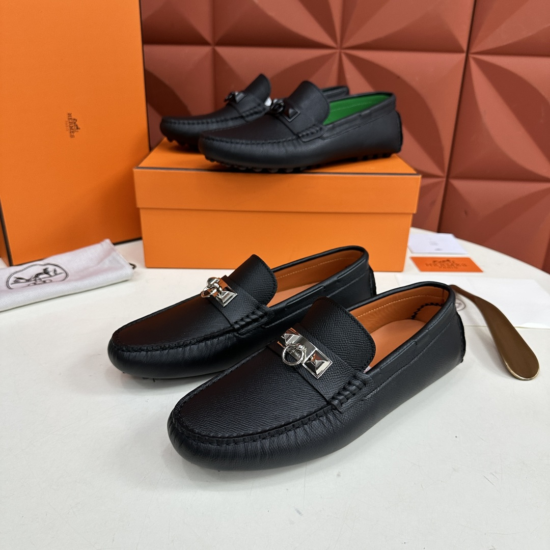 💋💍H家 爱马-仕 Herme*新品乐福鞋 一脚蹬豆豆鞋 此次选用进口荔枝纹/手掌纹皮制成 为手缝鞋面点缀 鞋面饰三角钉金属大扣️置于牛皮横带。水染橙色,绿色小牛皮内里及垫脚 舒适鞋型成就轻盈质感,柔韧舒适橡胶豆豆外底 精雕细琢、匠心打造 采用手缝工艺,简约舒适款 见证品牌悠远制鞋传承