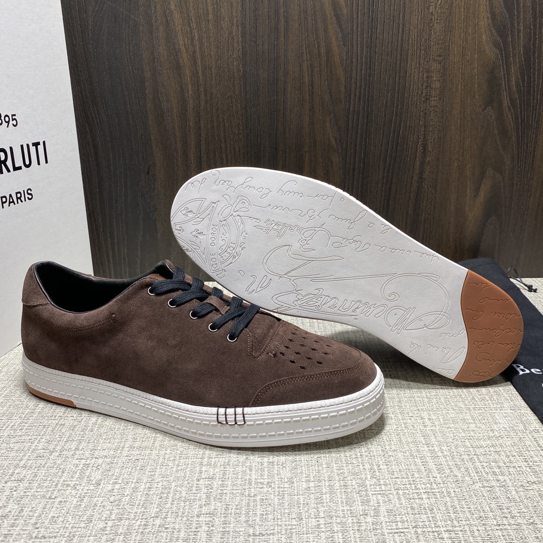 💋 💍BERLUT* 布鲁提 新品 PLAYTIME PALERMO 运动鞋板鞋 一片式皮质鞋 鞋面上手工缝有间面缝 运动表面处理: 金属鞋眼和菱形孔眼 鞋底上有Scritto图案装饰 醒目光泽反差色棉鞋带和鞋面 鞋面采用进口高丝光反毛皮打造 内里水染小牛皮 舒适度超级赞 独家开模TPU双色大底 标准皮鞋码数:39~44。(45、46🉑️定做).