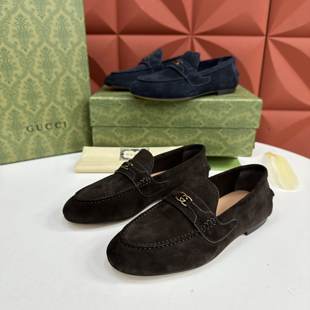 💋💍G家新品男士“G金属扣乐福鞋 官方7,300 采用进口翻毛皮打造 各式纹理和材质以焕新格调再次诠释标志性细节。这款男士乐福鞋运用金色调金属G*标识logo扣细节演绎品牌名称,致敬百年历史传承。精致手工缝制鞋面 经典设计以苯染色皮革呈现,意大利真皮大底 后跟复合橡胶底片 增强抓地性能 标准专柜码数:39~44# (38.45.🉑️定做) .