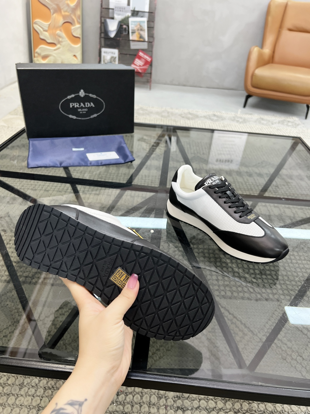 P 🔍顶级代购🇮🇹 普 炸街男神新品来袭,超人气爆款专柜新款,原厂配置意大利进口牛皮面料,高品质复杂拼接工艺,经典的外观搭配气垫新底更加潮达人,进口牛皮内里垫,透气舒适,鞋底:原厂特供原版底超级舒适,原厂跟单货🔍高品质,可随意进出专柜,欢迎对比,码数 38-44(订 45 46).