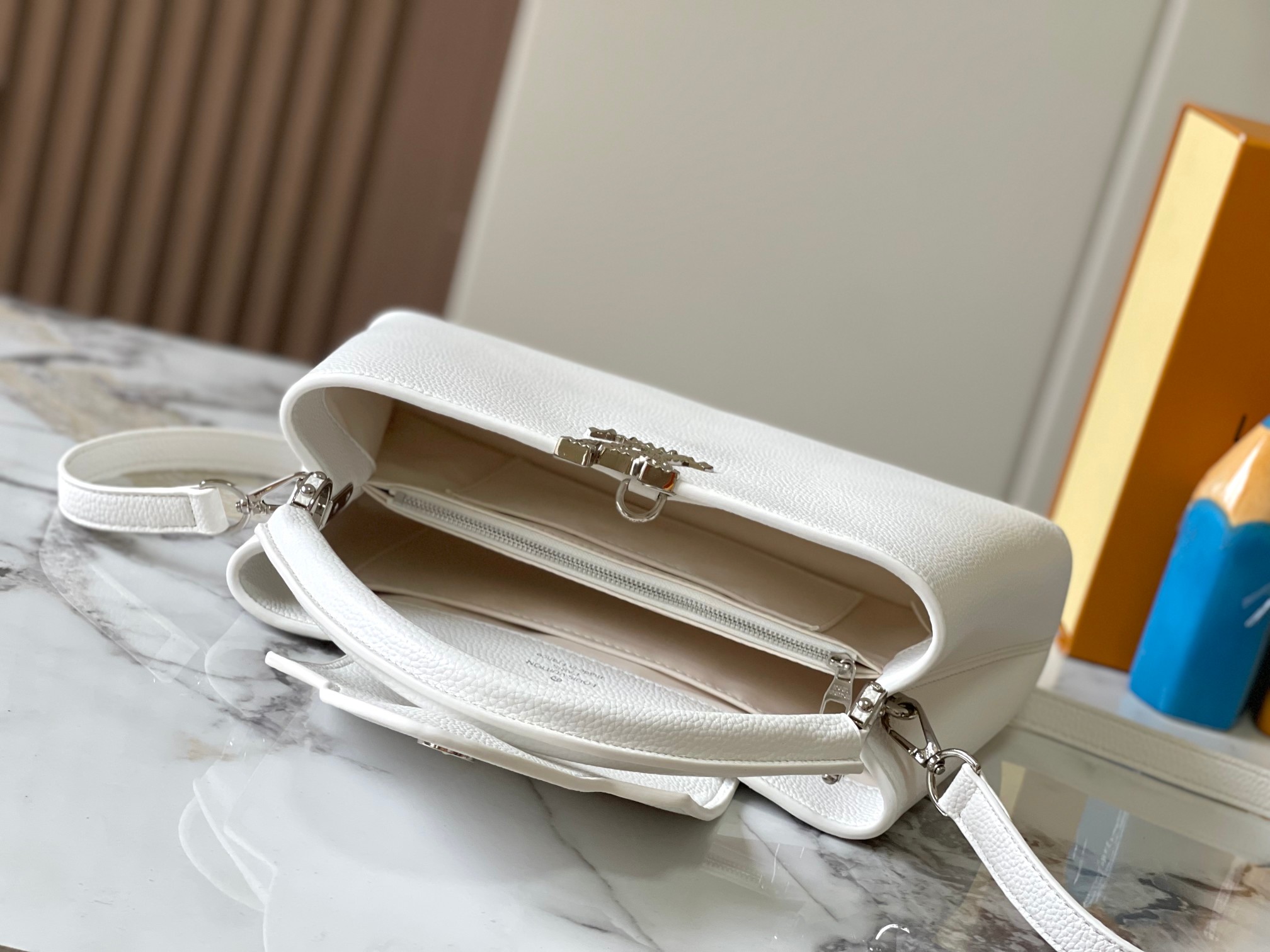 顶级原版 广州货🇫🇷M24664本款Cap-ucinesEastWest中号手袋出自LVCrush系列,以瞩目锻纹LV字母点亮粒面牛皮革包身。顶部辊压皮革手柄提供手提或肘挎选择,可调节并拆卸的细肩带方便肩背。