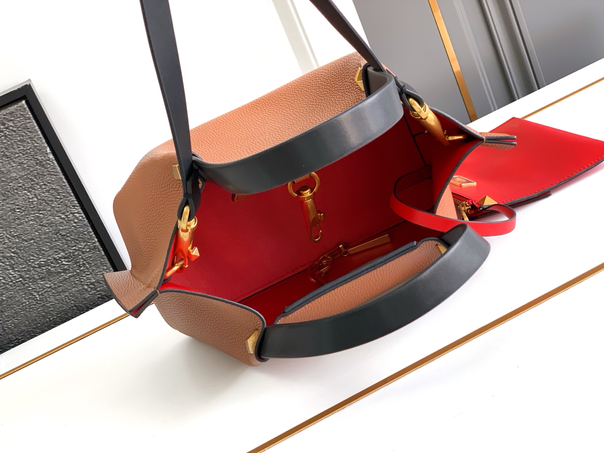 🆕❣️Garavani VLOGO Escap-e 荔枝纹小号购物袋,包袋两侧点缀红色细节,金属徽标饰件可用在包装内部作为开合,亦可用在外部作为装饰元素,复古鎏金铜扣金属配件,内设置物袋,包底护脚