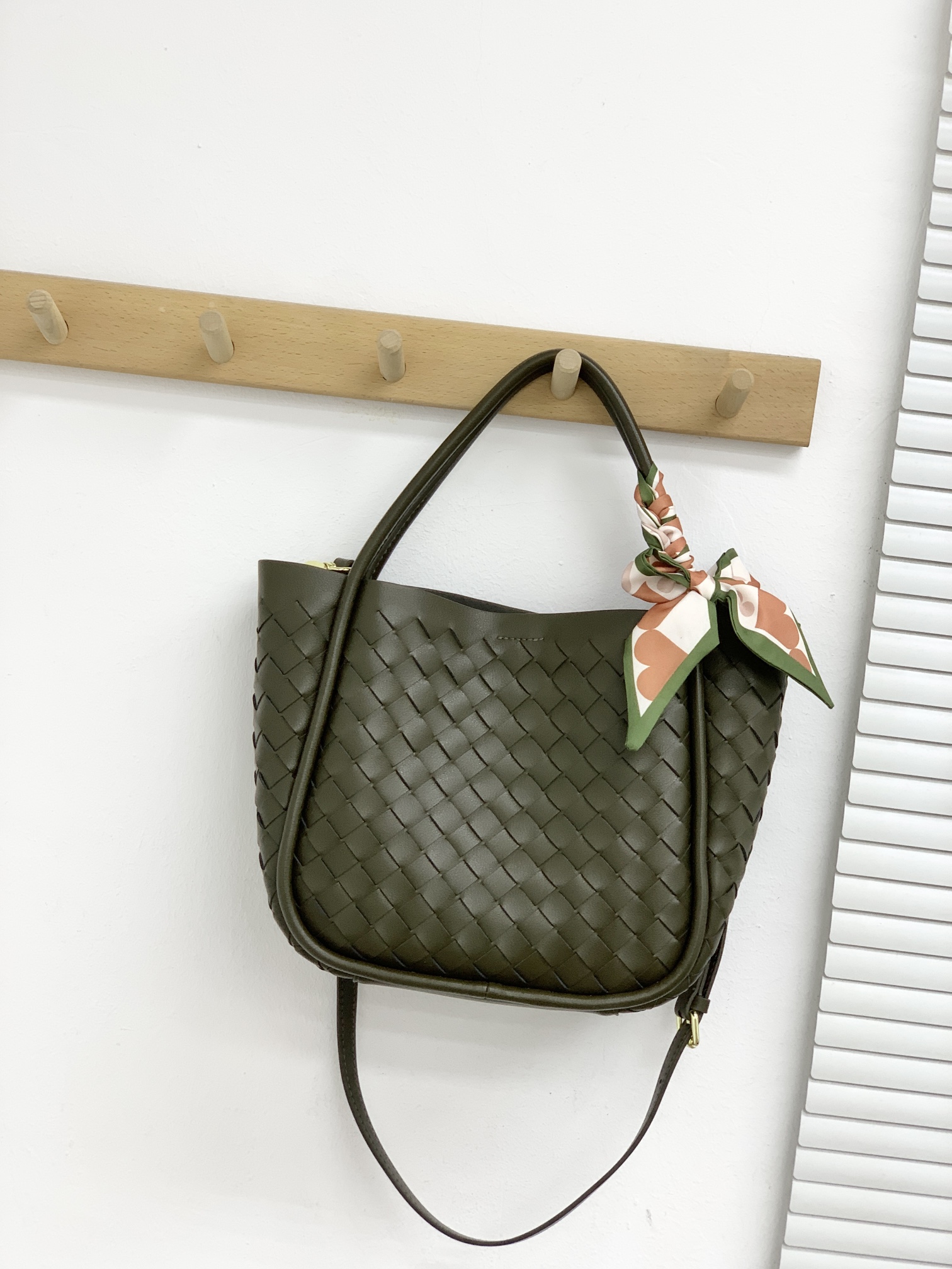 #编织小菜篮子母包,可以轻松应对不同的收纳需求,无论是日常的手机、钥匙,还是小物品,都能妥善安放。