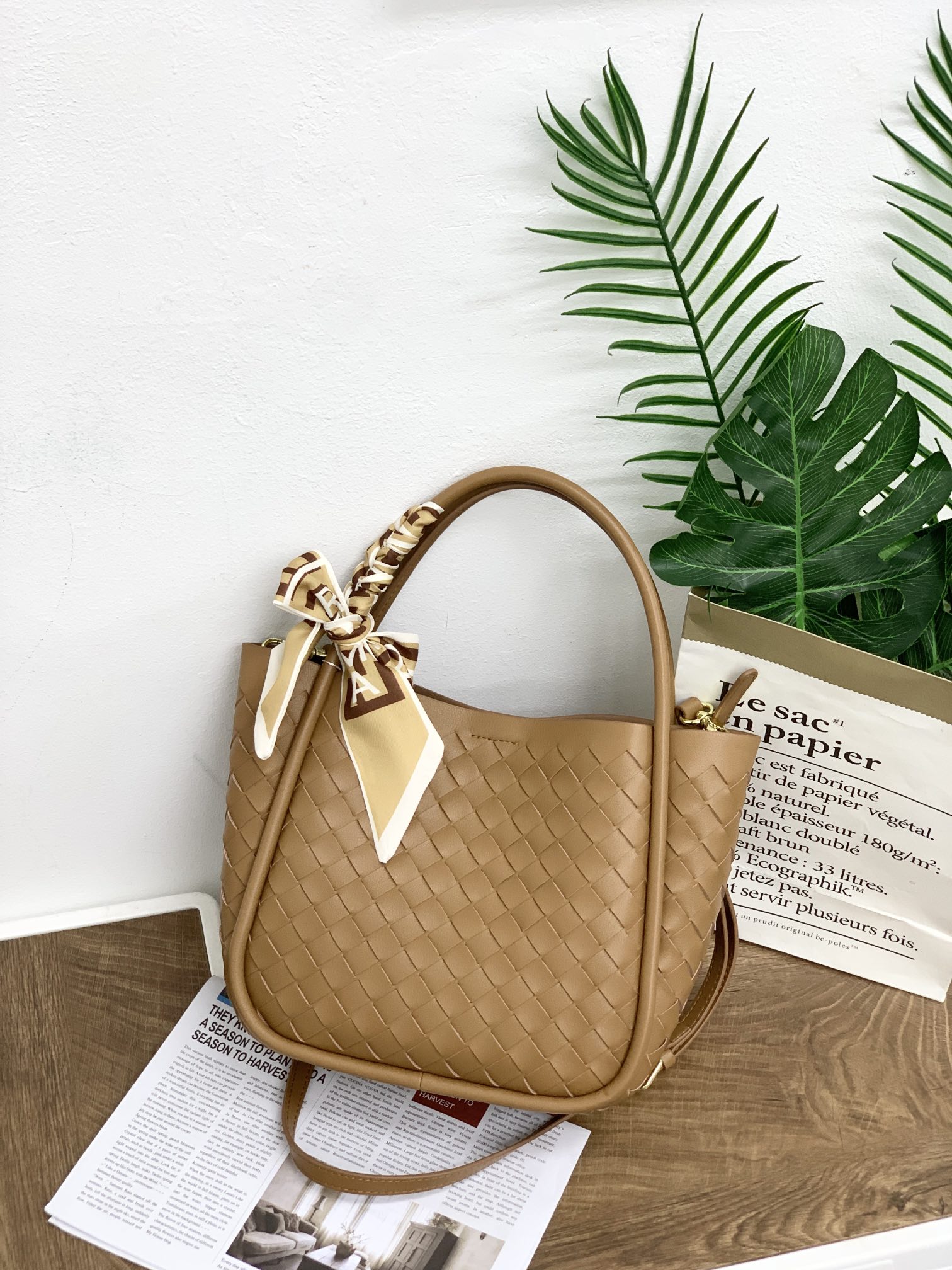 #编织小菜篮子母包,可以轻松应对不同的收纳需求,无论是日常的手机、钥匙,还是小物品,都能妥善安放。