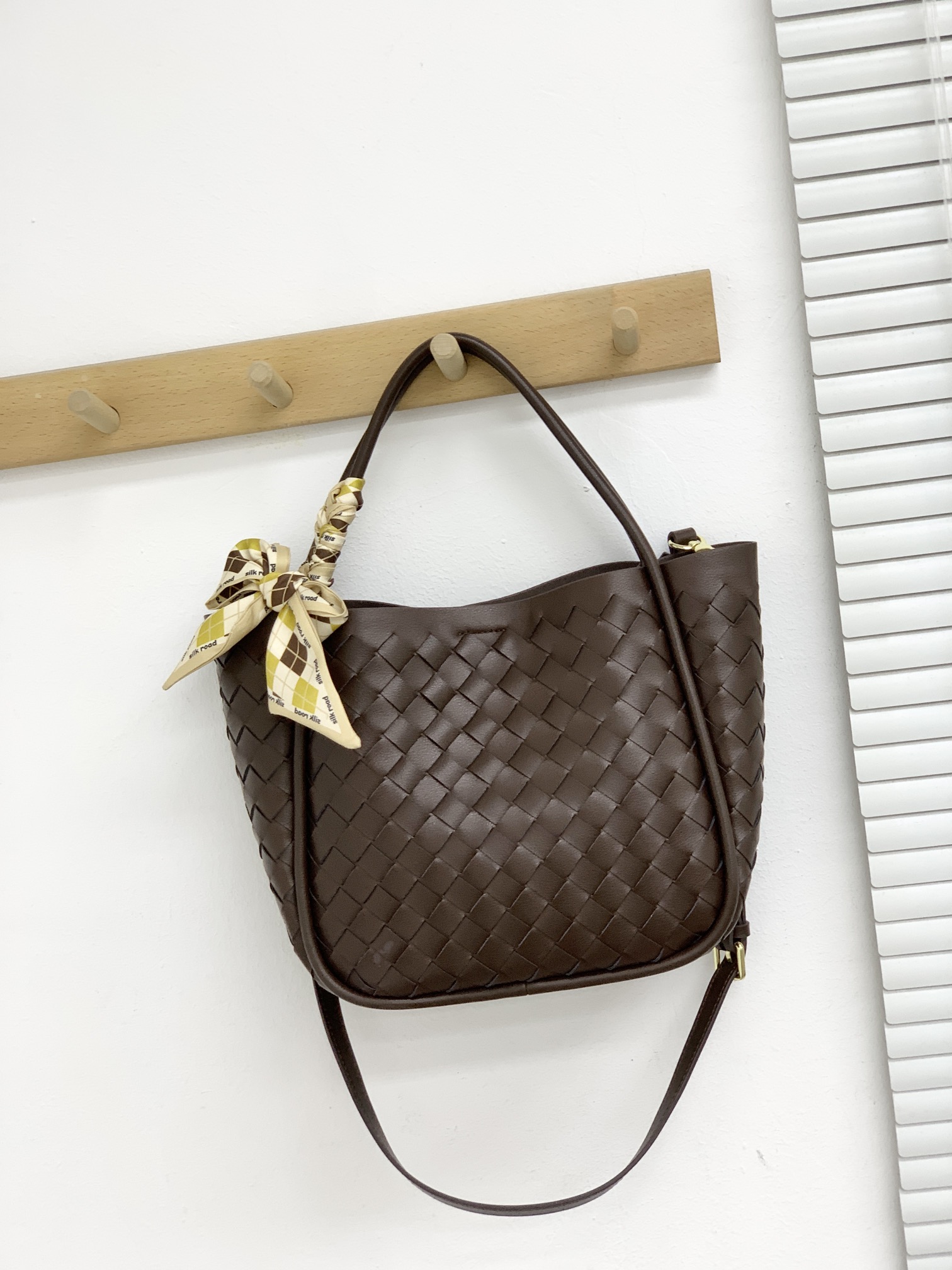 #编织小菜篮子母包,可以轻松应对不同的收纳需求,无论是日常的手机、钥匙,还是小物品,都能妥善安放。