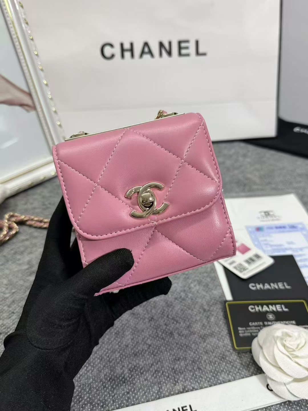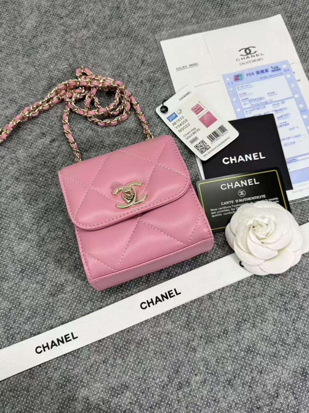 Ohanel原单 新款零钱包 单肩斜挎 金属牌 旋转搭扣 进口小羊皮 尺寸11*11*5。型号:81633.