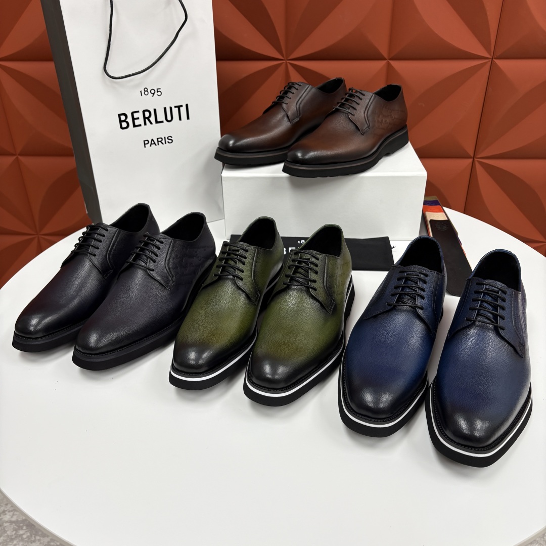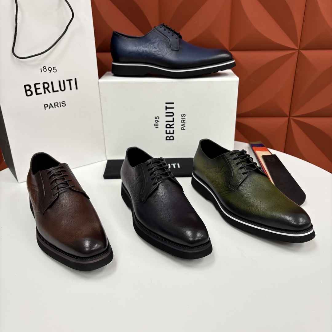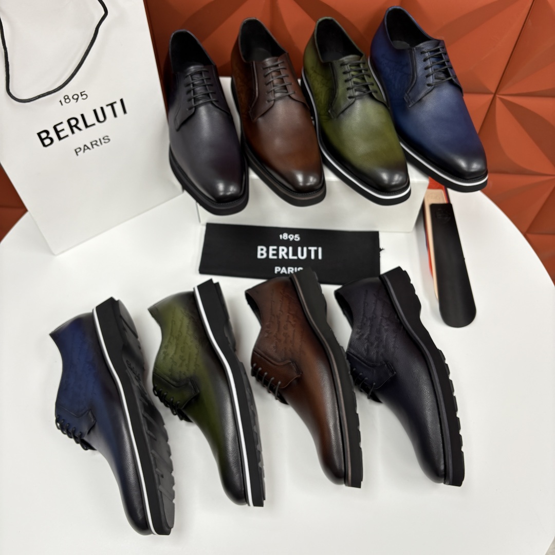 💋 💍 BERLUT* 布鲁提 New Alessio皮革牛津鞋 官方 17,100 男士厚底皮鞋 此款男鞋鞋面采用进口甩纹皮胚手工反复擦色改色才有的色泽 鞋面饰压纹刺青不对称Scritto图纹图案 黑色进口小牛皮内里垫脚 原版双色大底 加入真皮沿条贴边车线 厚底设计。脚感轻盈舒适 原版橡胶底片 (区别市场普通底)防滑耐磨 今年流行的鞋款 可休闲可正装 轻松驾驭 配原包装礼品袋发售
