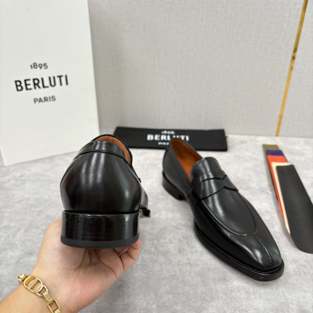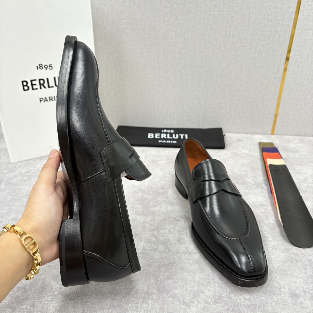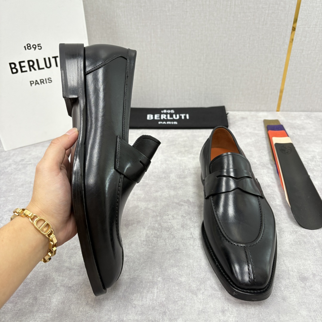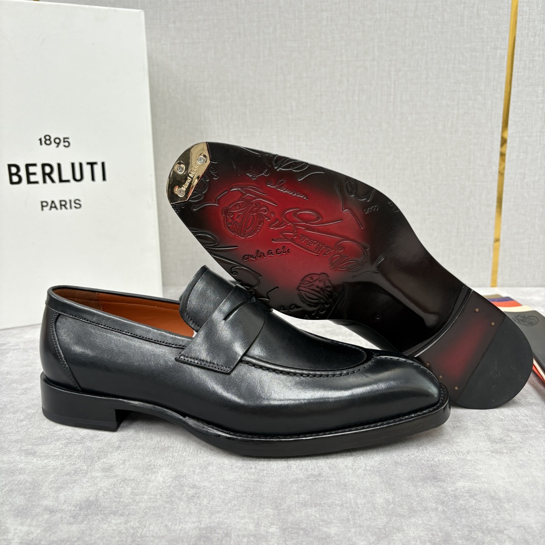 💋💍BERLUT* 布鲁提 新品男士乐福鞋皮鞋 这款 Berlut*乐福鞋采用了经典的一脚蹬款式,简约流畅的线条勾勒出优雅的鞋身轮廓,彰显着低调而奢华的气质。意大利进口/鳄鱼纹压纹牛皮/平纹小牛皮 手工改色擦色而成 鞋面选用顶级的小牛皮材质,皮质细腻柔软,富有光泽,且具备良好的柔韧性与耐用性。随着穿着时间的增加,皮革会逐渐形成独特的光泽和纹理,展现出独一无二的个性魅力 内里水染小牛皮 皮质细腻光泽透亮 简约套脚楦型 手工滚边收线缝接 细节精致 搭配意大利真皮大底底层饰以不对称 Scritto图纹徽标 鞋底边缘还镶有金属部件,不仅起到了装饰作用,还增强了鞋底的耐磨性和耐用性,体现了品牌对细节和品质的极致追求。后跟橡胶贴片减震 有效保障上脚舒适度 。标志性的剪裁与版型,不仅贴合脚部曲线,提供舒适的穿着体验,更能瞬间提升整体造型的精致感,无论是搭配正式的西装套装出席商务场合,还是与休闲裤装组合展现日常的随性优雅,都能轻松驾驭,尽显绅士风度。