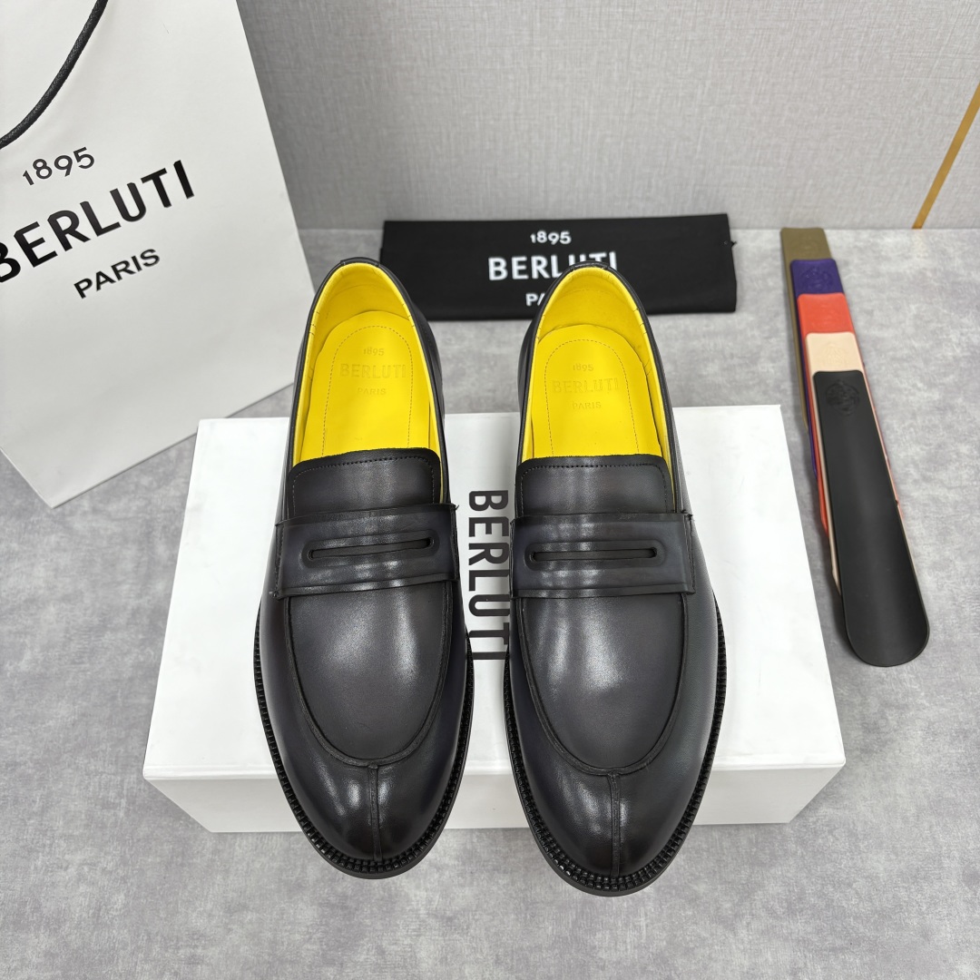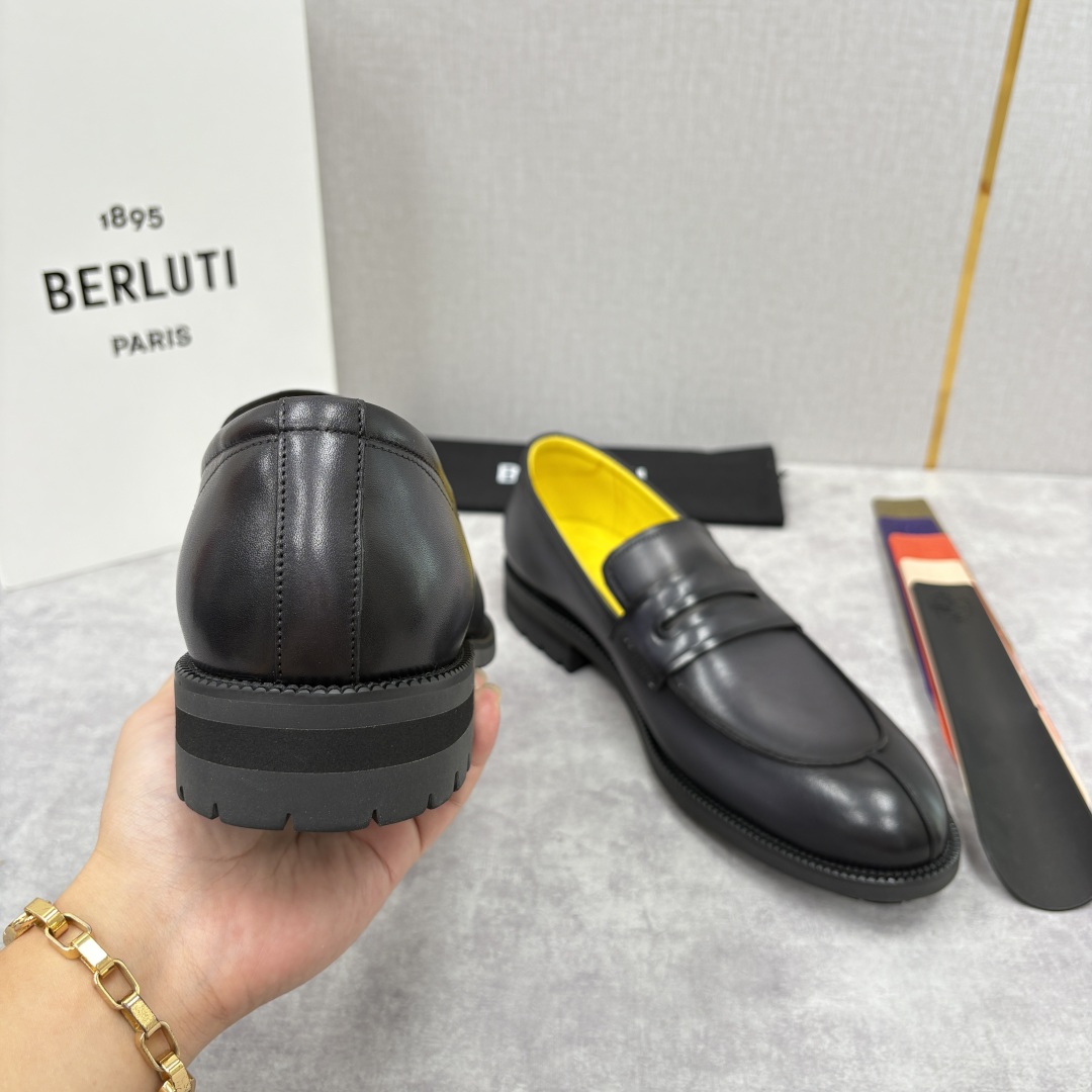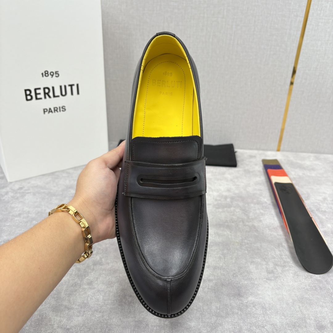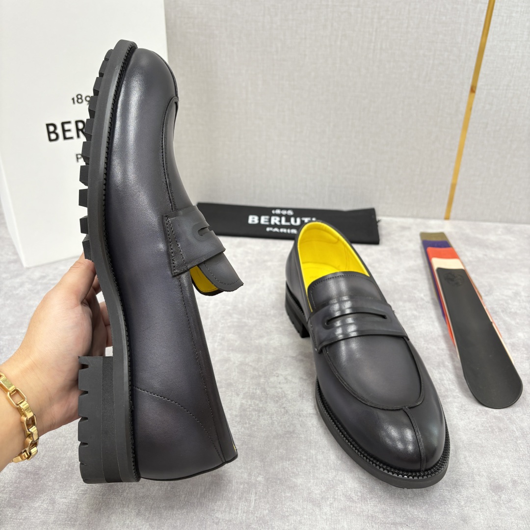 💋💍Berlut* 布鲁提 新品上架 New Oslo 皮革乐福鞋皮鞋 官方 23,700 选用优质头层皮胚手工转色制成,细腻纹理、温润质感,彰显高级质感。手工擦色工艺赋予鞋履独特渐变效果,每一双都自带专属“烙印” ,在经典中注入个性,告别千篇一律。 鞋内明黄色小牛皮衬里,不仅点亮视觉,更以柔软材质贴合双脚,行走间给予舒适包裹。现代高科技波浪形外底与防水可翻新鞋底提供抓地力与稳定性,轻松应对多元环境。扎实鞋底兼顾稳定性与缓震性,让你在彰显格调的同时,也能享受自在行走的轻松,将优雅与实用完美融合。 延续乐福鞋一脚蹬的便捷基因,简约鞋型适配多元场景。无论是西装革履的商务洽谈,还是休闲装出行,都能轻松融入,成为造型的点睛之笔,展现绅士的从容品味。