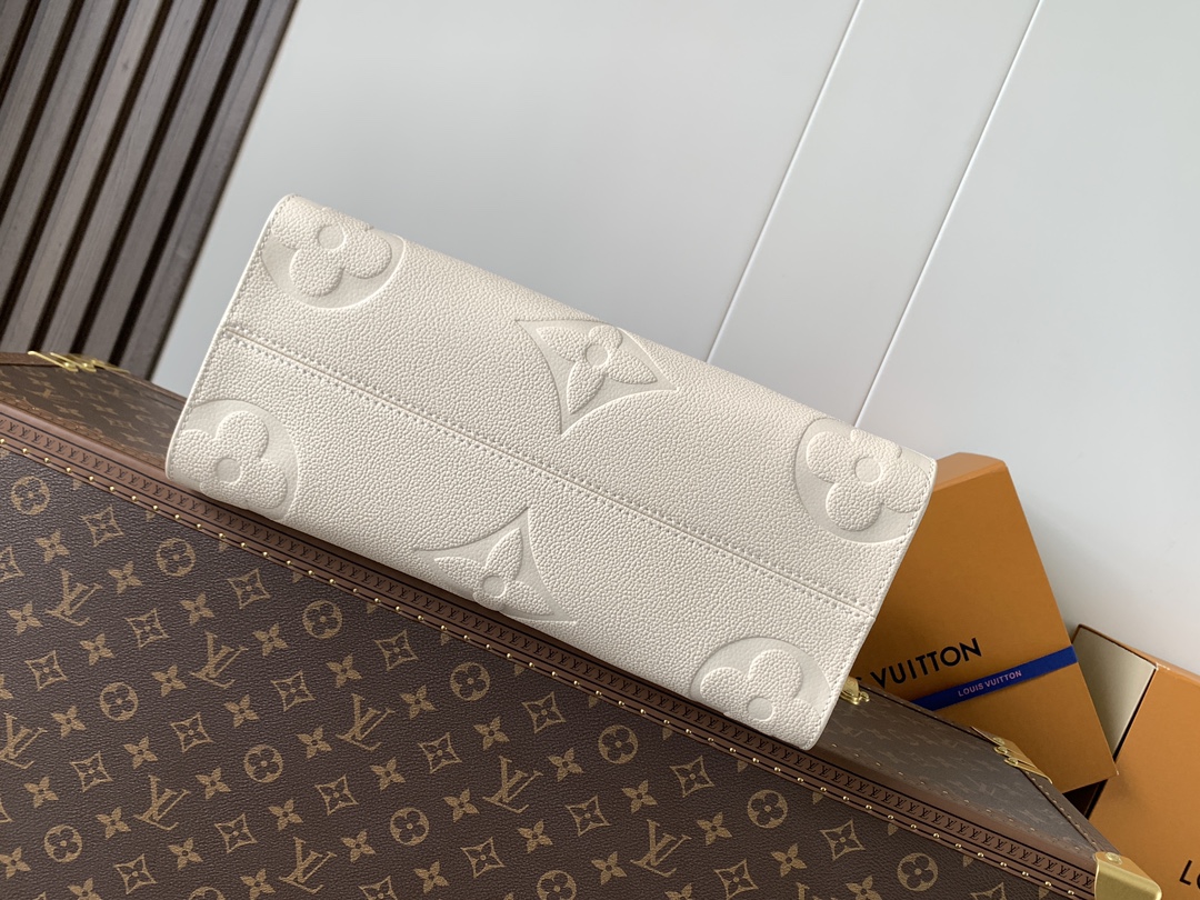 顶级原单本款 OnTheGo 中号手袋选用 Monogram Empreinte 皮革,以粒面纹理烘托 Monogram 压纹,为棱角分明的构型注入一抹典雅韵味。微纤维构筑的充裕内层可容纳笔记本电脑,轧制皮革手柄和长肩带实现多种背携方式。35.0 x 27.0 x 14.0 cm (长 x 高 x 宽)
