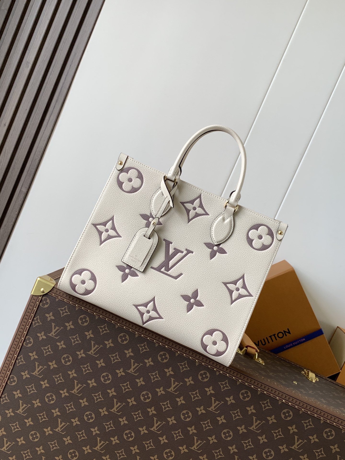 顶级原单本款 OnTheGo 中号手袋选用 Monogram Empreinte 皮革,以粒面纹理烘托 Monogram 压纹,为棱角分明的构型注入一抹典雅韵味。微纤维构筑的充裕内层可容纳笔记本电脑,轧制皮革手柄和长肩带实现多种背携方式。35.0 x 27.0 x 14.0 cm (长 x 高 x 宽)