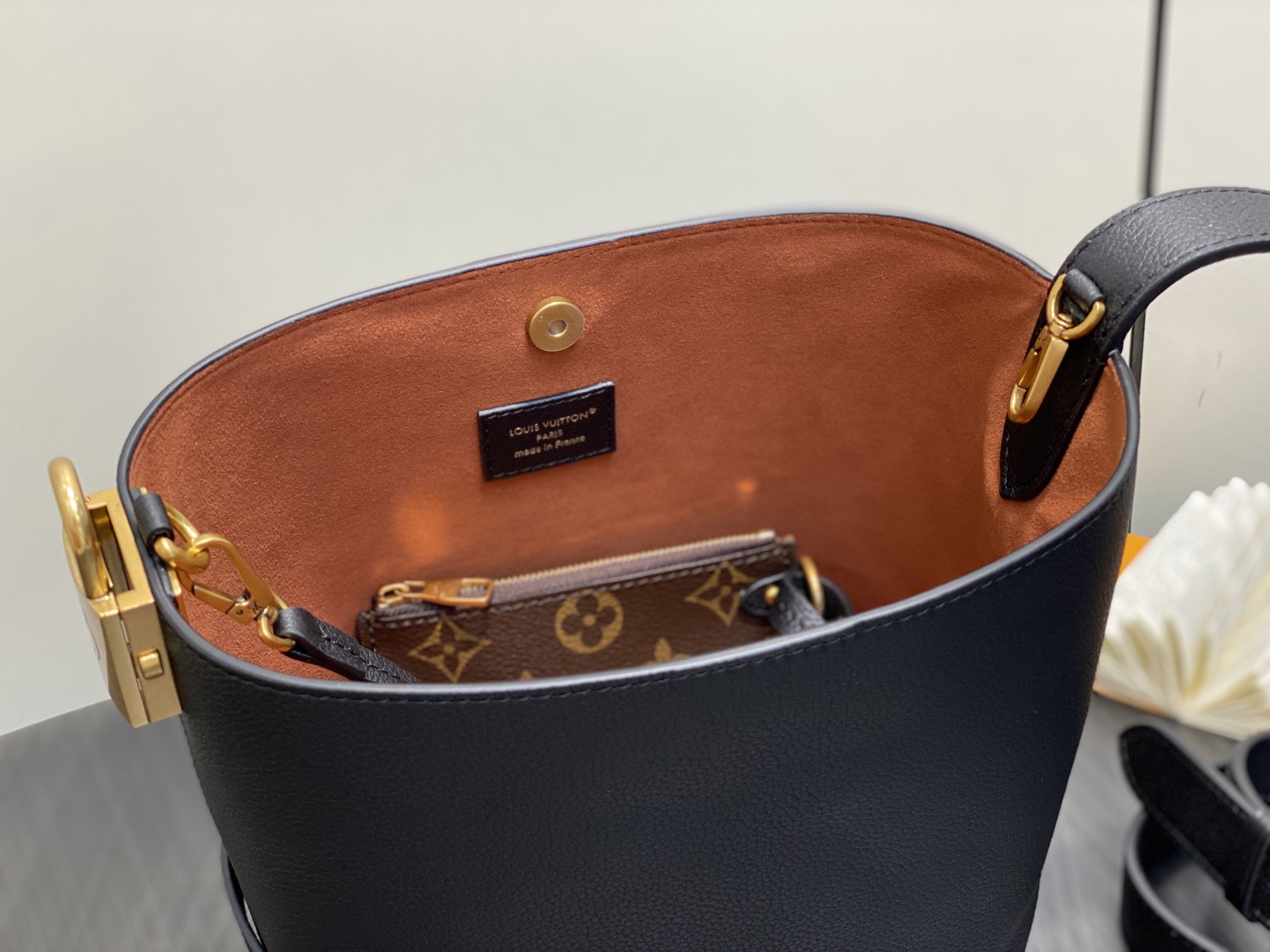 【顶级原单】M14416黑色 全皮水桶包 LOW KEY ALL IN BB 手袋 M25543黑色 M14416棕色 本款 All In BB 手袋出自 Low Key 系列,采用粒面牛皮革塑造紧凑水桶包构型,以多种背携方式游刃昼夜场合。做旧金属件传递复古意味,LV 挂锁和可拆卸 Monogram 口袋彰显品牌格调。尺寸:18 x 12 x 16 厘米(高 x 宽 x 长度) .