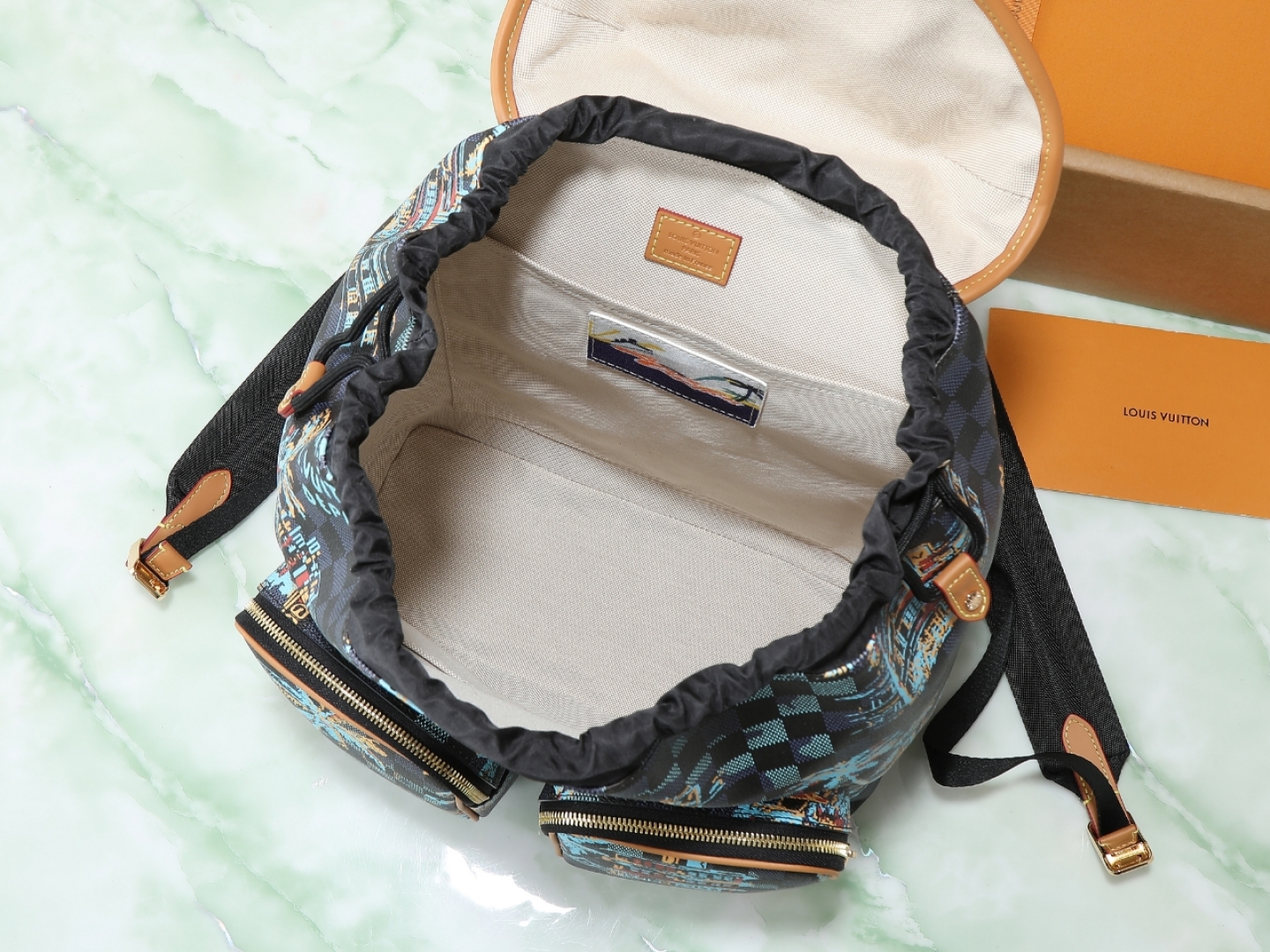 【顶原级单 独家实拍】N40755 这款Montsouris Cargo背包 特点圆是润形的状,拉和链舒适的肩带。它用采棉提制花成,采了用代表迈密阿及其热的闹夜生活的织编图案。这复款古格风的型号以然天牛皮装饰重为点,前配部有个两外部口袋,以加增舒适度。尺寸:34x40x17cm(长度x高x宽).