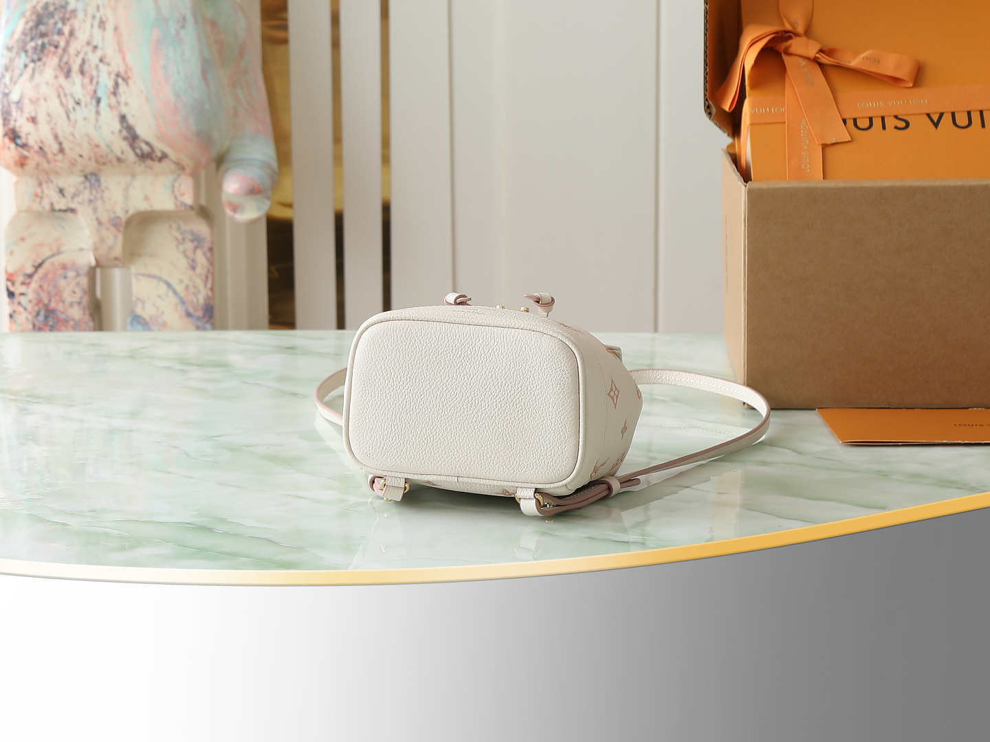 【顶级原单 独家实拍】M13656 奶杏色(提花)Nano Noé 双肩包为皮革包身浸染双重色调,可轻松点亮昼夜造型。淡雅 Monogram 图案搭配撞色边缘,与耀目链条相得益彰。充裕空间方便收纳手机、唇膏和短款钱夹等日常所需。尺寸 :15 x 10 x 19 厘米    .