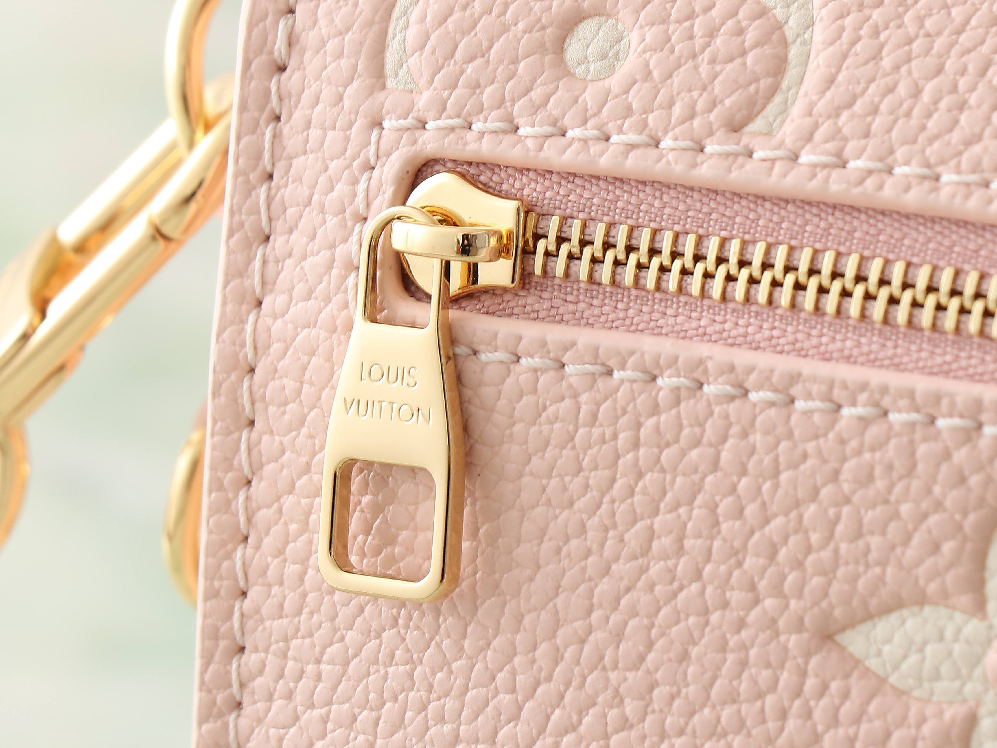 【顶级原单 独家实拍】M14208奶昔粉 Ski 系列 Pochette Métis East West 手袋取材 Monogram Empreinte 皮革 以莹泽金属件彰显考究格调 可为雪后造型注入典雅姿彩 紧凑构型内设多重隔层 拉链内袋便于收纳贵重物品 尺寸:21.5x13.5x6cm.