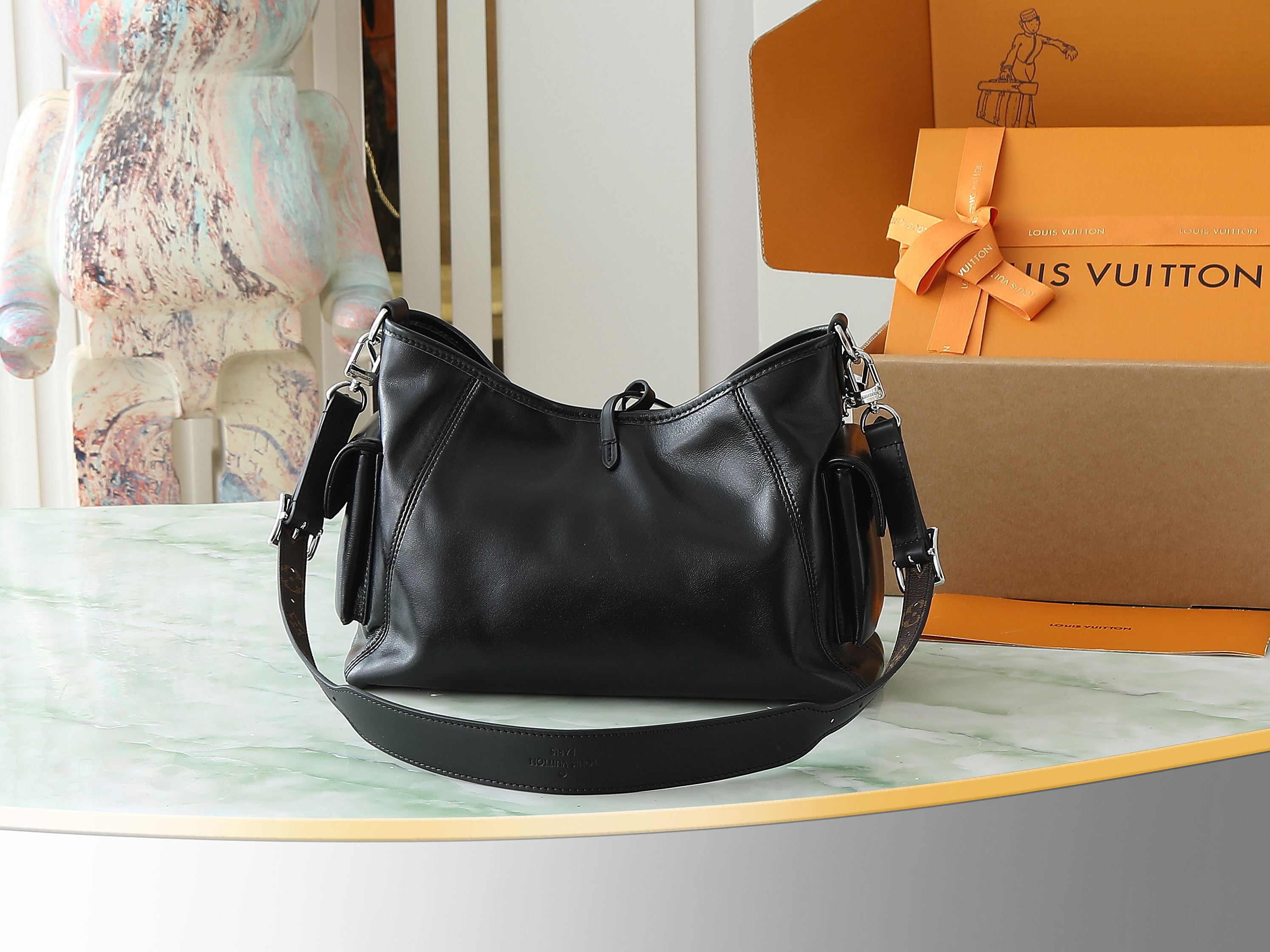 【顶级原单 独家实拍】M24861黑色 全皮购物袋系列 CarryAll Cargo 小号手袋 M46203 以柔软羊皮革呈现时尚微皱效果,并为深邃背景搭配抛光金属件与慵懒构型,成就昼夜场合佳选。可拆卸肩带与链带实现多种造型可能。尺寸:33.5 x 23.0 x 15.0 厘米。.