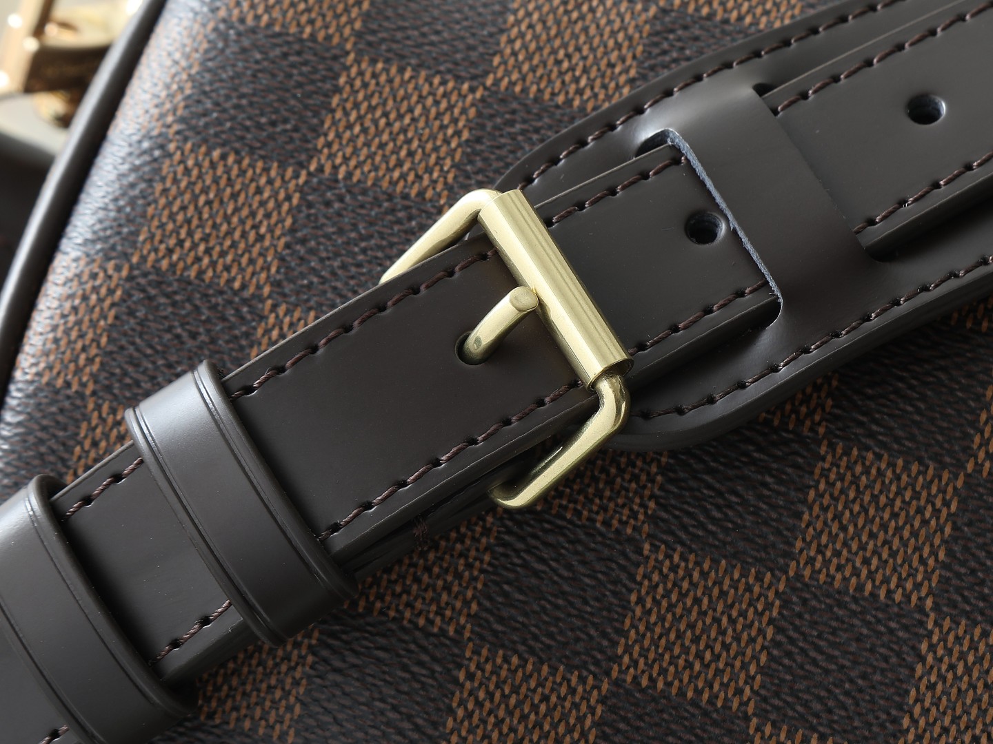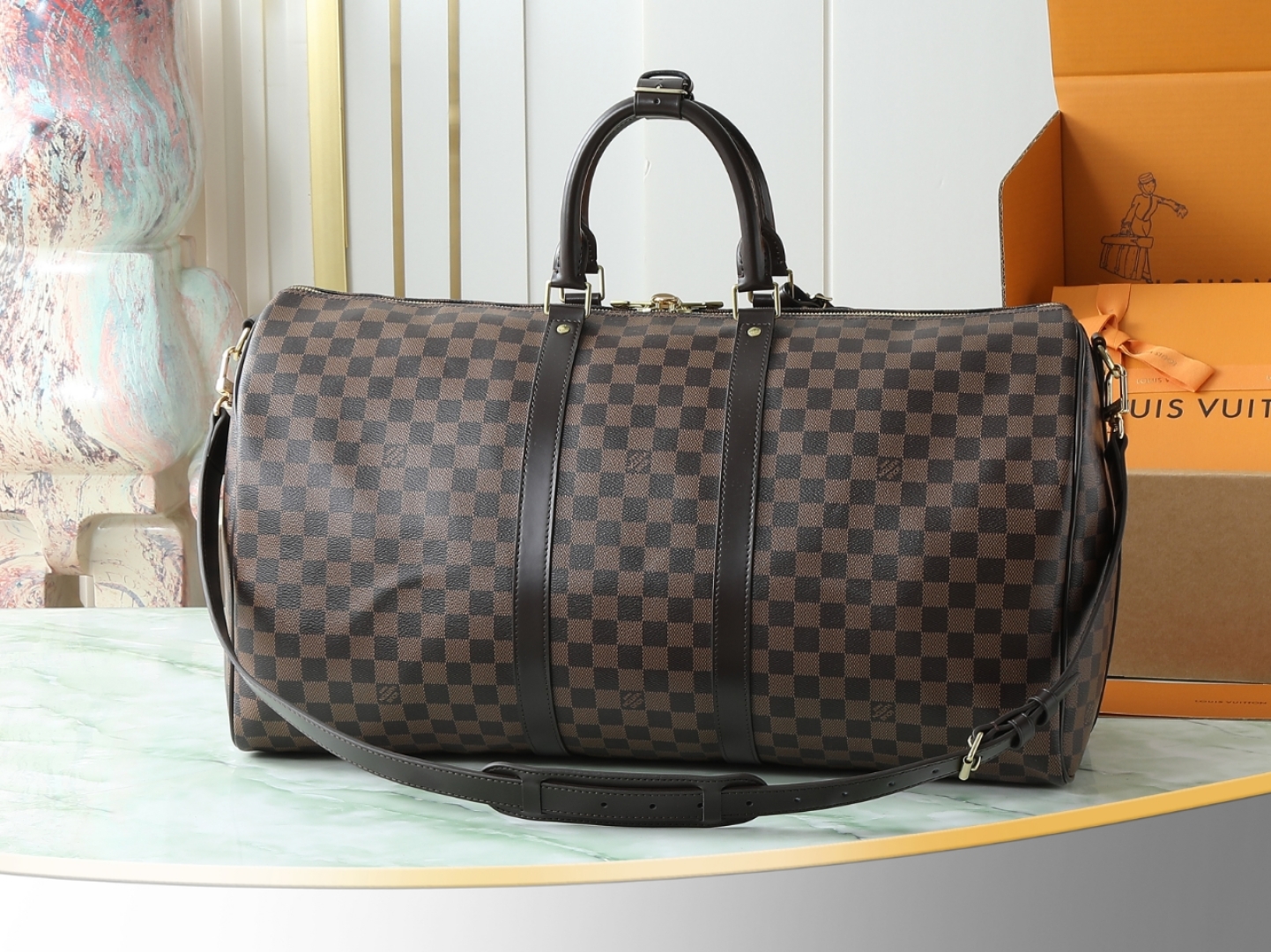 【顶级原单 独家实拍】M41413啡格 KEEPALL 55 旅行袋(配肩带)这款以Damier Graphite帆布制作的旅行包再现了的经典设计,时尚优雅,同时轻便耐用。备有可拆卸背带,可手提或肩背,十分实用。详细特征55 x 31 x 26 厘米 (长度 x 高 x 宽)特殊涂层帆布天然牛皮饰边棉纺织衬里银色金属配件双拉链开合设计可脱卸皮质ID证件套挂锁随身上机行李尺寸肩带:可拆卸,可调节包带半长:36.0 厘米包带半长可调至:50.0 厘米手柄:双手柄.