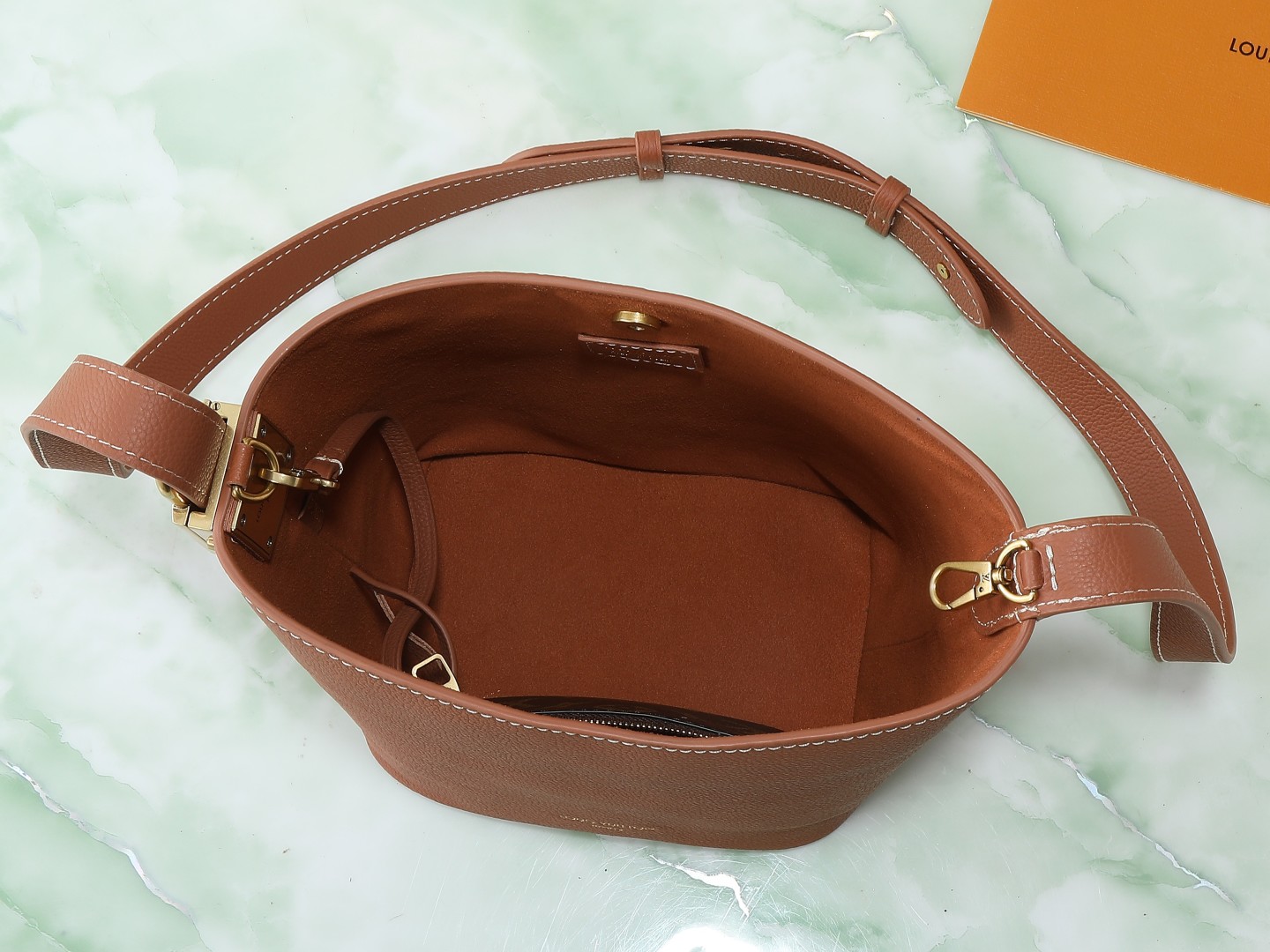 【顶级原单 独家实拍】M14416棕色 全皮水桶包 LOW KEY ALL IN BB 手袋 m25543 黑色 m14416 棕色 本款 All In BB 手袋出自 Low Key 系列,采用粒面牛皮革塑造紧凑水桶包构型,以多种背携方式游刃昼夜场合。做旧金属件传递复古意味,LV 挂锁和可拆卸 Monogram 口袋彰显品牌格调。尺寸:18 x 12 x 16 厘米(高 x 宽 x 长度)  .