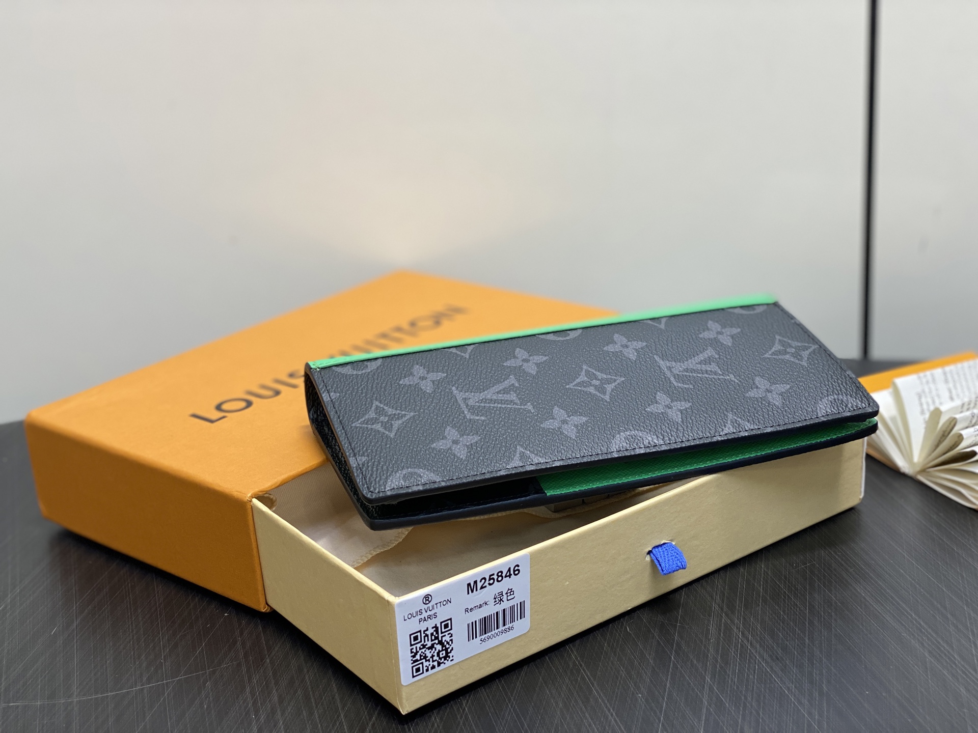 【顶级原单】M25846黑花/绿色 长款西装夹钱包 当季新款 BRAZZA 钱夹 本款 Brazza 钱夹拥有经典 Monogram Eclipse 帆布的深邃质感,与皮革饰边的活力气息相映成趣。纤长构型设有卡片夹层、拉链袋和多重隔层,可稳妥收纳零钱、纸钞及票据。19 x 2 x 10 厘米。.