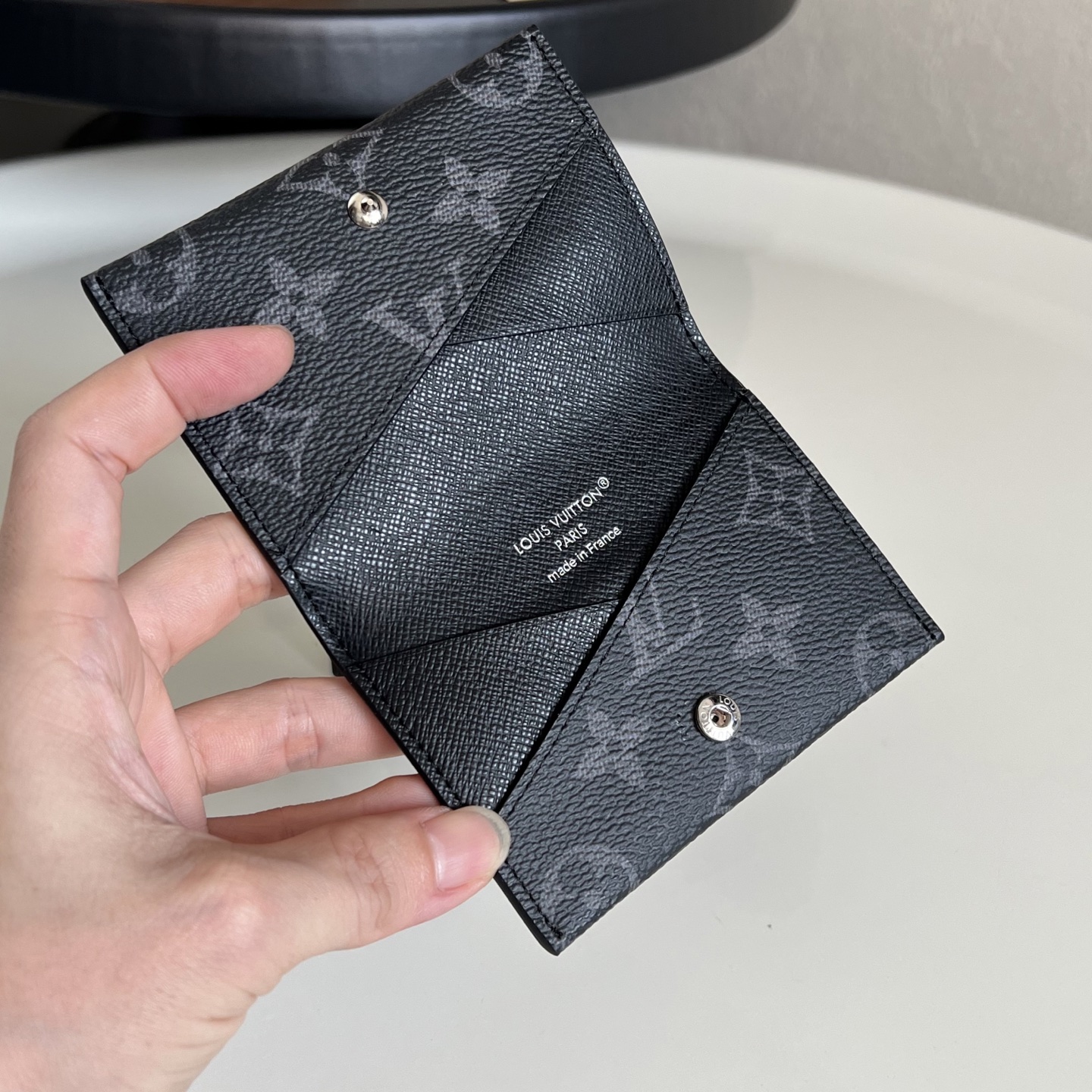 芯片版💕M14918黑花 本款 Slim 卡夹选用 Monogram Eclipse 帆布塑造信封式设计,成就日常出行的简约之选。卡片夹层与按扣开合实现稳妥收纳,精巧构型可轻松置于各式包袋。