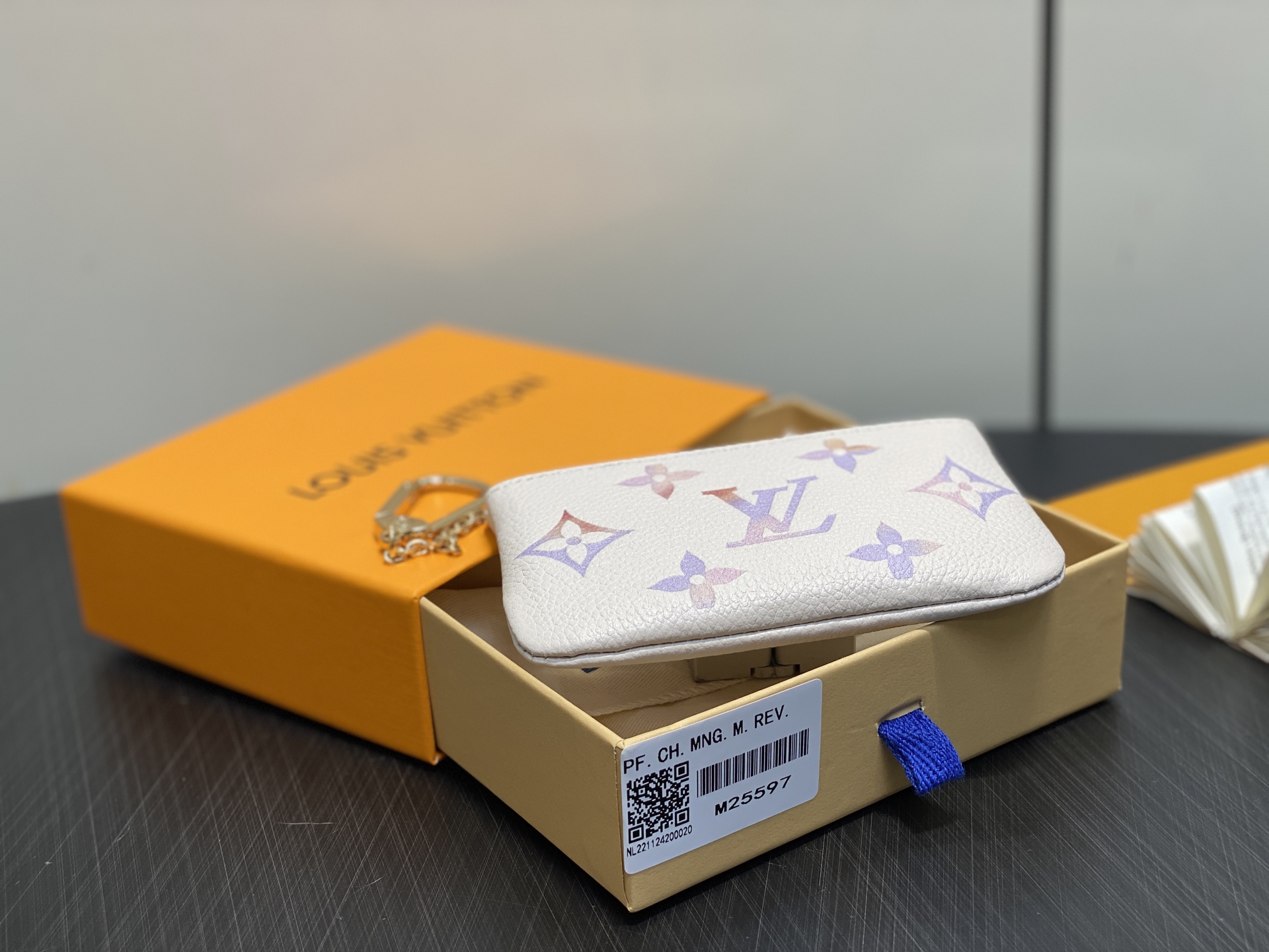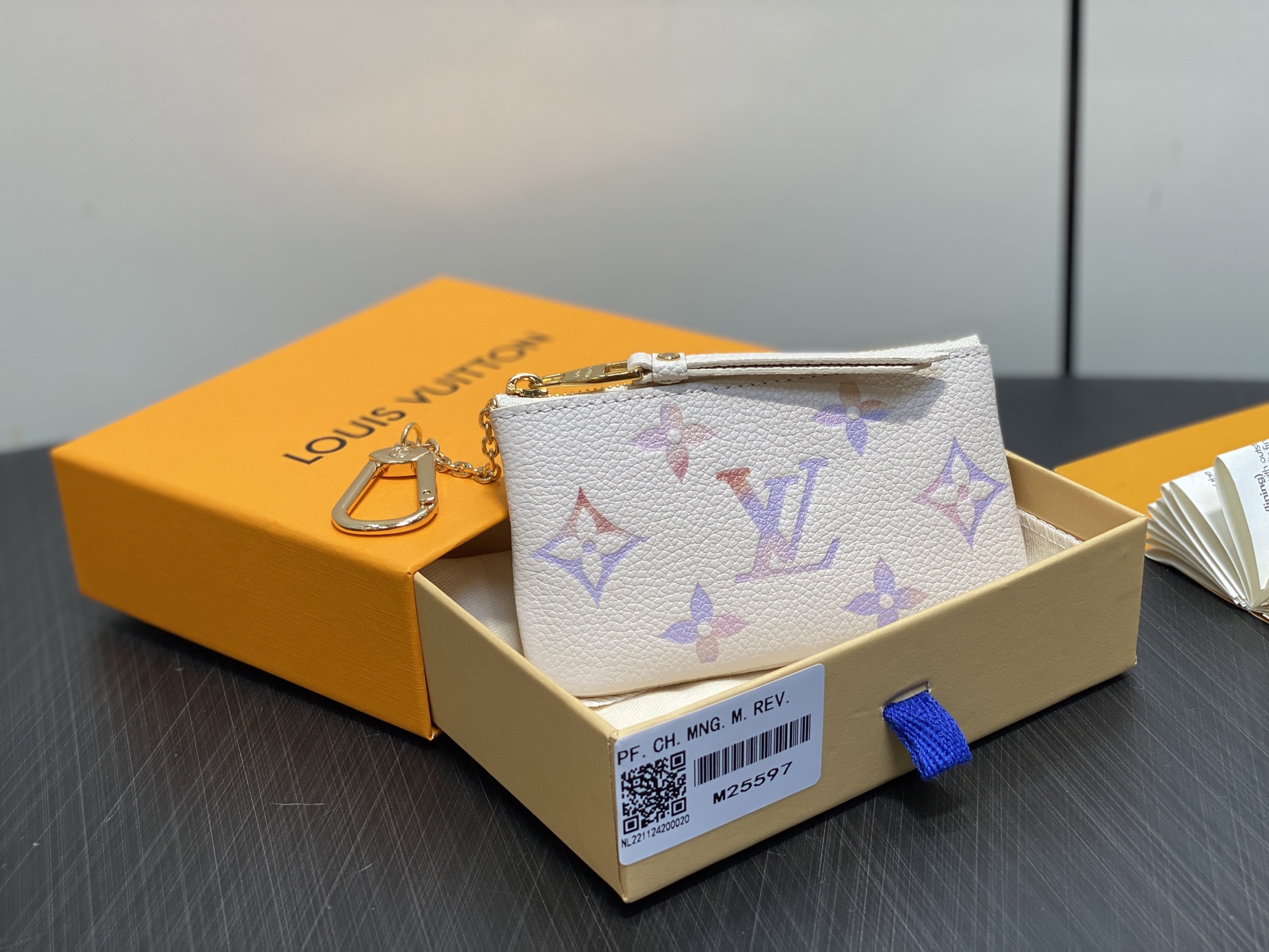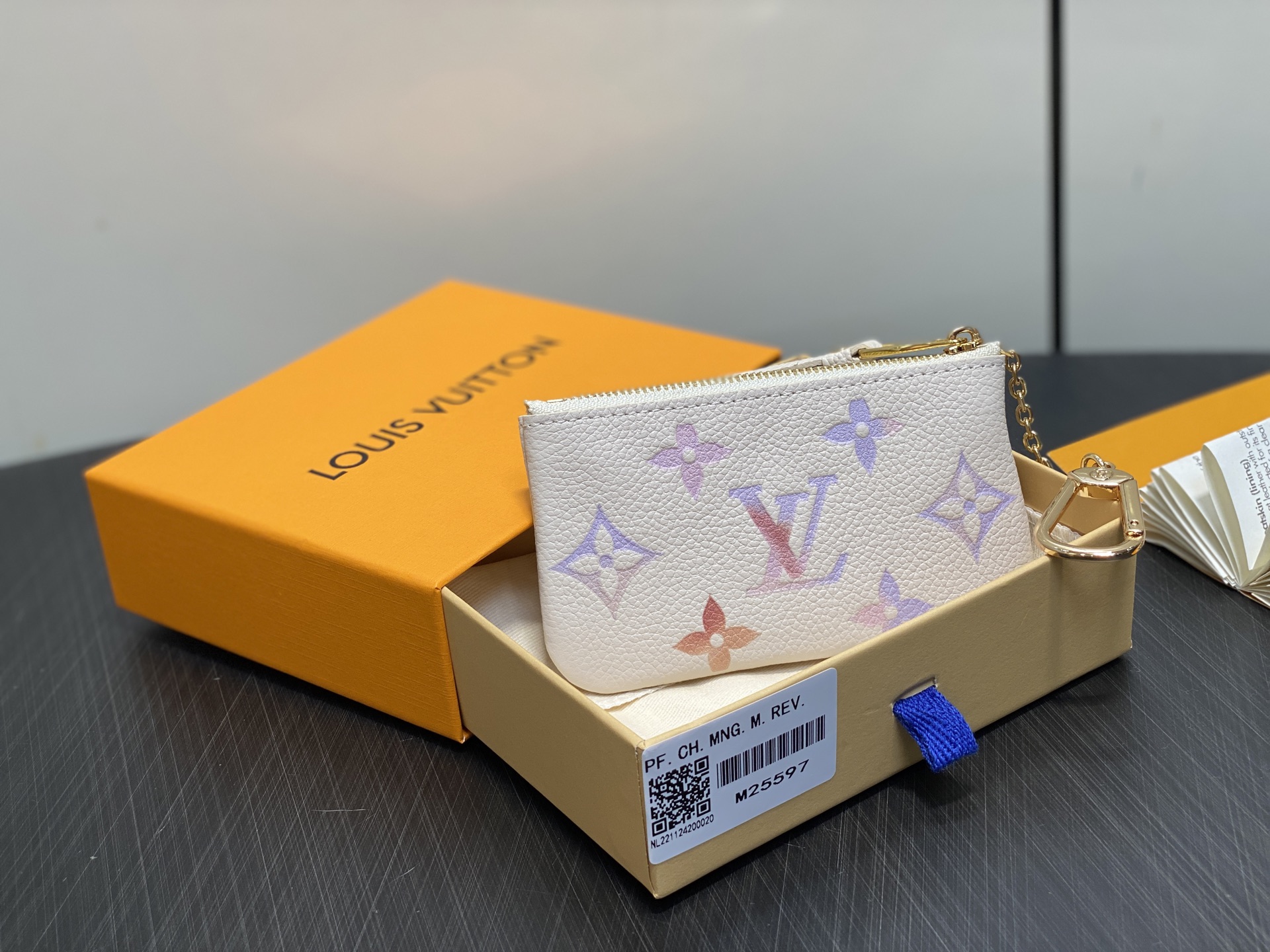 【顶级原单】M25597米白 七夕限定幻彩全皮钥匙包 当季新款 钥匙零钱包 本款钥匙零钱包拥有典雅幻梦色彩,以 Monogram Empreinte 皮革塑造玲珑构型,彰显路易威登的悠久传承和精湛匠艺。链条配有钥匙钩扣。7 x 1.5 x 12 厘米。.