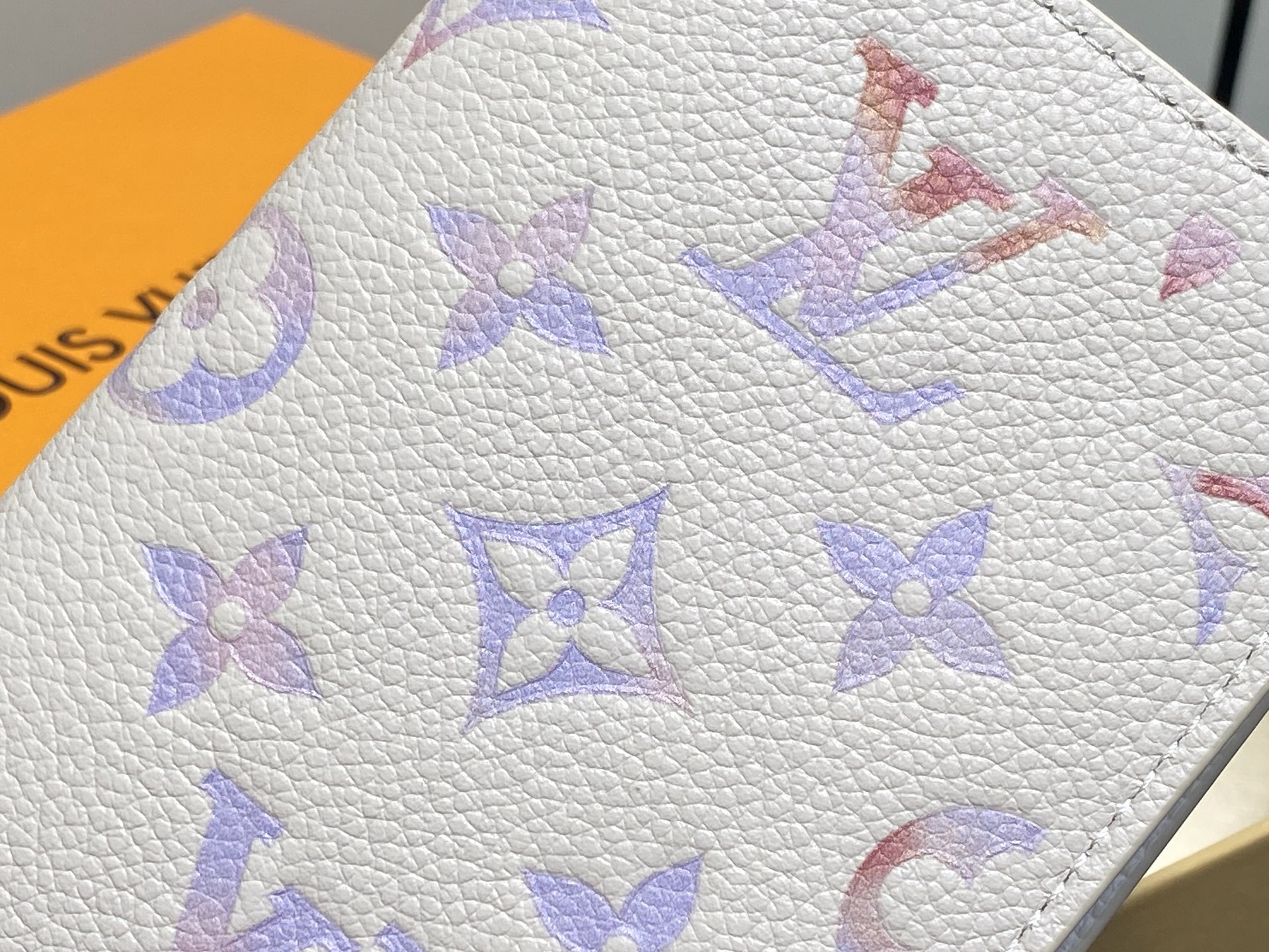 【顶级原单】M25917米白 七夕限定幻彩全皮护照夹护照套 本款护照套为 Monogram Empreinte 皮革渲染梦幻色彩,与牛皮革内衬一道释放考究风范,与各式手袋搭配相宜。内设可收纳旅行证件的隔层和卡片夹层,成就典雅赠礼之选。14 x 2.5 x 10 厘米 .