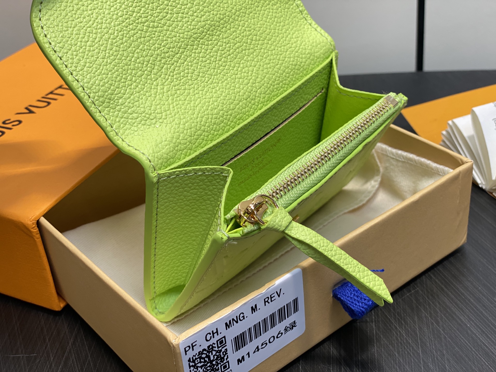 【顶级原单】M14506绿色 全皮压花卡包钱包 Rosalie 零钱包 这款Rosalie零钱包今季以彩色设计重新演绎,并以珐琅Monogram花卉图案按扣完美点缀。款式采用品牌标志性Monogram Empreinte皮革制作,缀以金色金属件,时尚小巧的设计备有拉链贴袋和两个名片夹层,能整齐安妥地存放贵重物品。11 x 8 x 2.5厘米