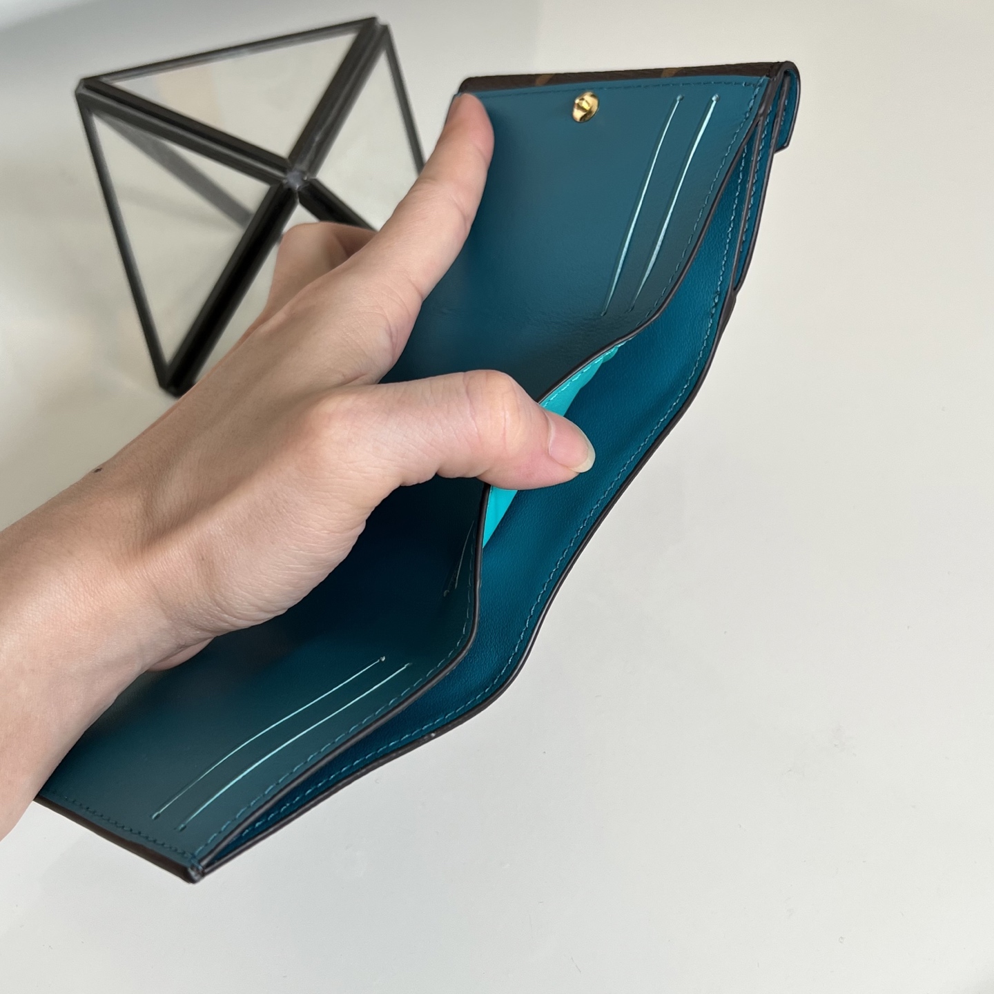 Celeste 钱夹兼具典雅格调与实用功能:Monogram 帆布塑造玲珑构型,牛皮革内衬浸染鲜明色彩,信封式翻盖配有铭纹按扣,内设风琴零钱袋、卡片夹层和可平整收纳钞票的口袋。