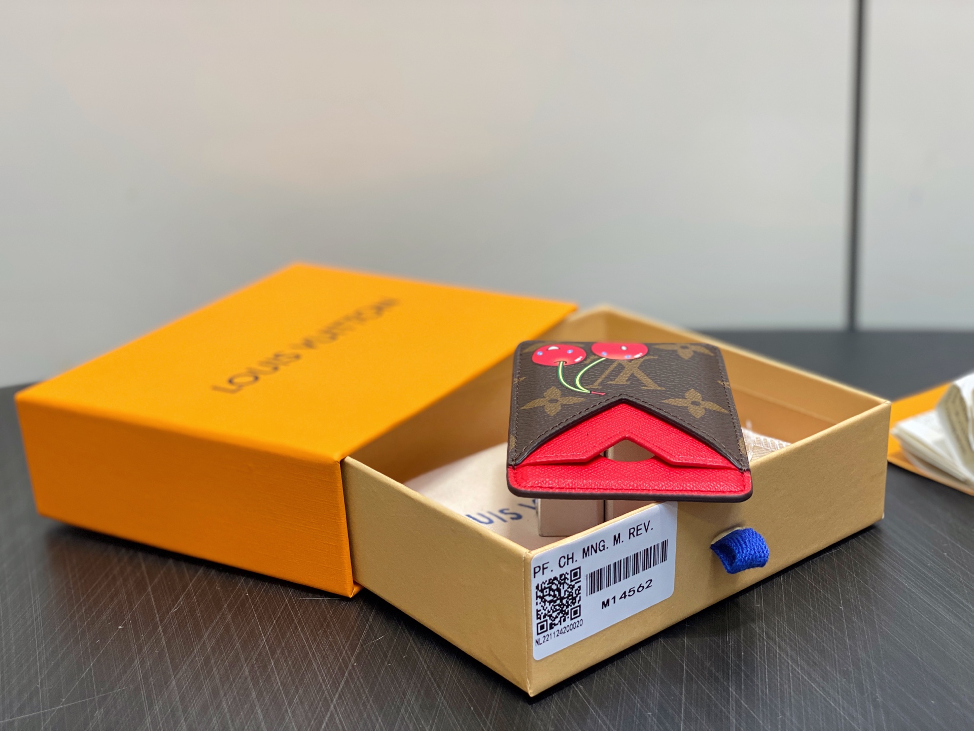 【顶级原单】M14562老花樱桃 磁吸手机卡夹 本款 Magnet 卡夹取材品牌经典 Monogram 涂层帆布,以内置磁性设计轻松吸附配备 MagSafe 磁吸技术的手机。樱桃图案彰显路易威登 x 村上隆复刻系列的灵动格调,明丽卡片夹层点睛细节。9.5 x 0.5 x 6.5 厘米。.