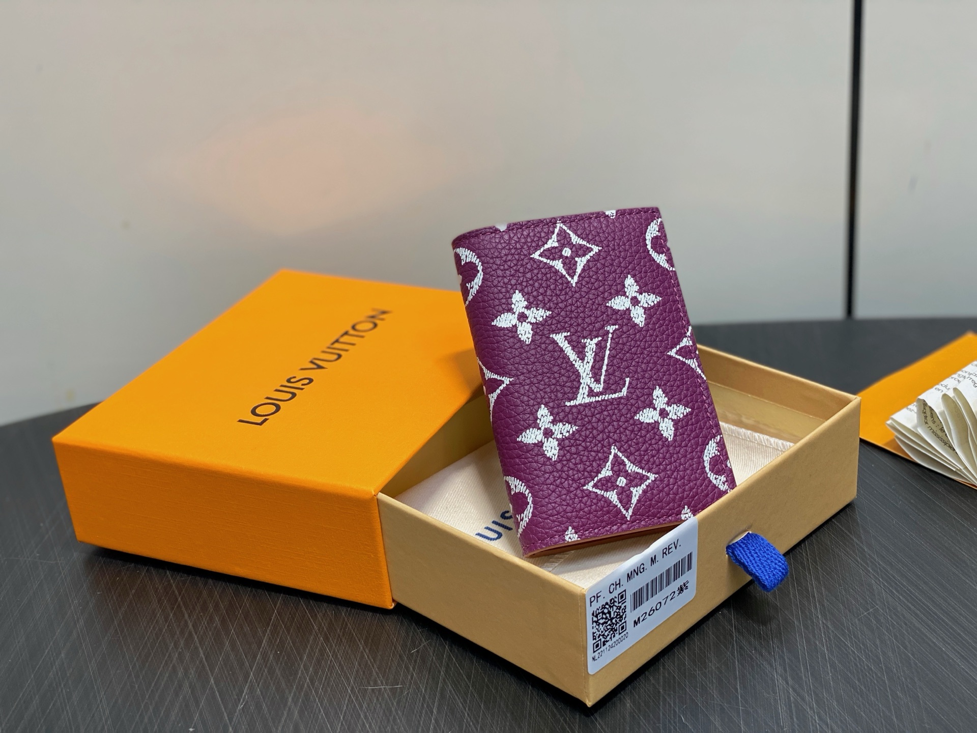 【顶级原单】M26072紫色 全皮丝印钱夹钱包 口袋钱夹 本款口袋钱夹为柔软粒面牛皮革包裹羊皮革内衬,以丝印 Monogram 图案呈现帆布印花的迷离观感,道出创意总监 Pharrell Williams 的新季巧思,为紧凑构型融入多重卡位和内外口袋,成就又一考究之选。11.1 x 1 x 7.5 厘米。.