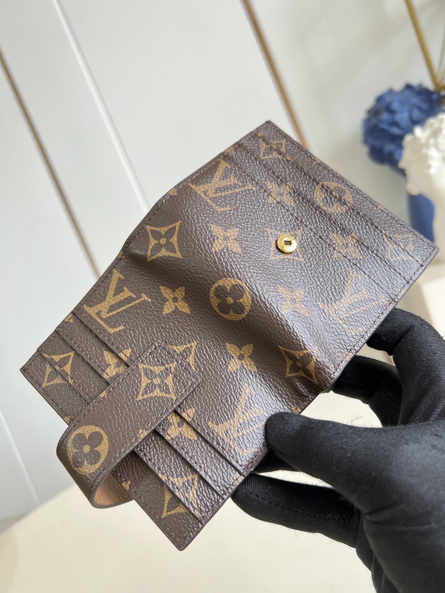 【顶级原单 M61731棕 】此款多功能卡包钱夹采用柔软的Monogram 帆布制成!衬以颜色鲜艳的內衬!气质极为优雅!轻便!零钱袋的设计造型更为实用!带12个卡槽 正面带固定五金按扣,尺寸: 12.0 x 10.0 cm .