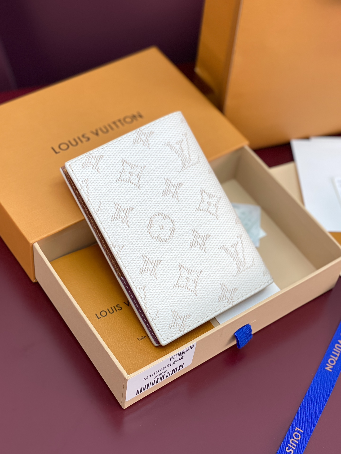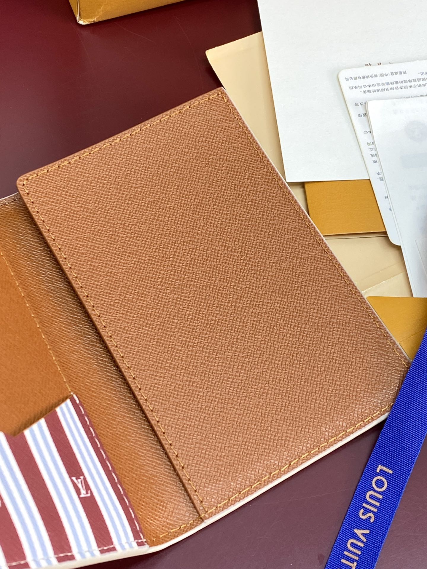 M15075 白条纹!护照套!本款护照套以 Monogram Heritage 涂层帆布包裹印花牛皮革内衬,再于正面下方抒写 Marque L.Vuitton Déposée 标识。内设卡片夹层与贴袋,可妥善收纳和携带护照。