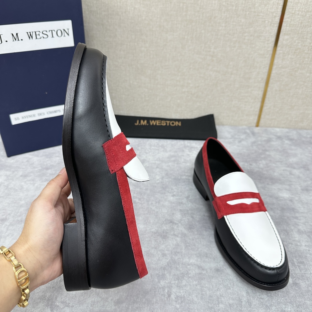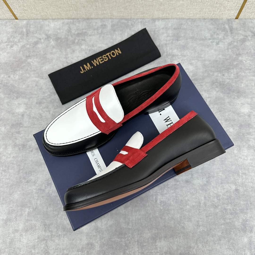 💋💍J.M.Westo*n 威士-顿 品牌经典 180 系列乐福鞋皮鞋 法国顶级皮鞋品牌 威士-顿皮鞋品牌起源于1891年在法国成立以来已有100多年的历史,其超过百年的纯手工制造男鞋 J.M.Westo*n 以传统精湛的手工技术、高雅而内敛的设计风格而享誉国际 堪称是奢华绅士皮鞋的制作典范 经典的男士乐福鞋皮鞋 采用进口开边珠亮皮/撞色小牛皮制成 手工缝制鞋面 精致的布雷克手工缝线 鞋面饰以牛皮横带加持 内里及垫脚选用优质苯染进口牛皮打造 垫脚上压印品牌 logo标识 原版意大利真皮大底 后跟加入橡胶底片增强抓地性能 防滑且舒适! 经典法式优雅,商务休闲场合通吃,商界精英的必选鞋履!