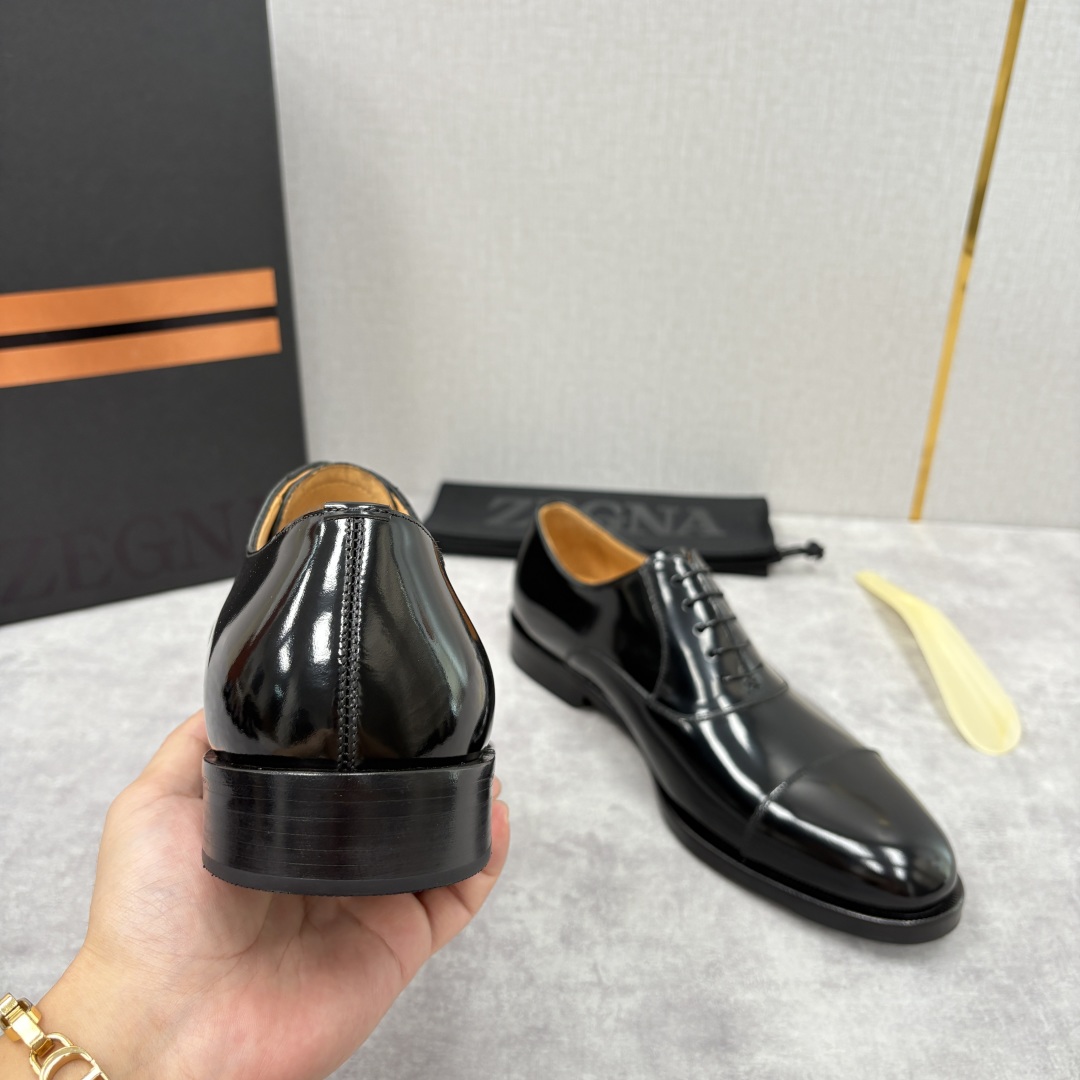 💋💍Zegn* 杰尼~亚 匠心工艺与优雅格调的典范 新款 男士商务正装鞋皮鞋,系带设计经典正统,鞋型线条流畅利落,无论是黑色亮面款的庄重华贵,还是棕色哑光款的沉稳雅致,都能完美适配商务正装场景,为职场精英打造严谨且不失格调的形象。采用进口开边珠牛皮/哑光牛皮三节头设计,脚感非常舒适,苯染小牛皮内里,意大利真皮大底,前掌与后跟都有橡胶底片加持,增强抓地性能与舒适度!皮革的天然纹理与精致的光泽度相得益彰,鞋型的立体剪裁凸显优雅轮廓;触觉上,柔软的皮革贴合足部曲线,行走时的舒适感与支撑感恰到好处。无论是出席重要商务会议,还是参与高端社交活动,杰尼-亚正装鞋都能以其卓越质感,让穿着者时刻展现从容自信的绅士风范。