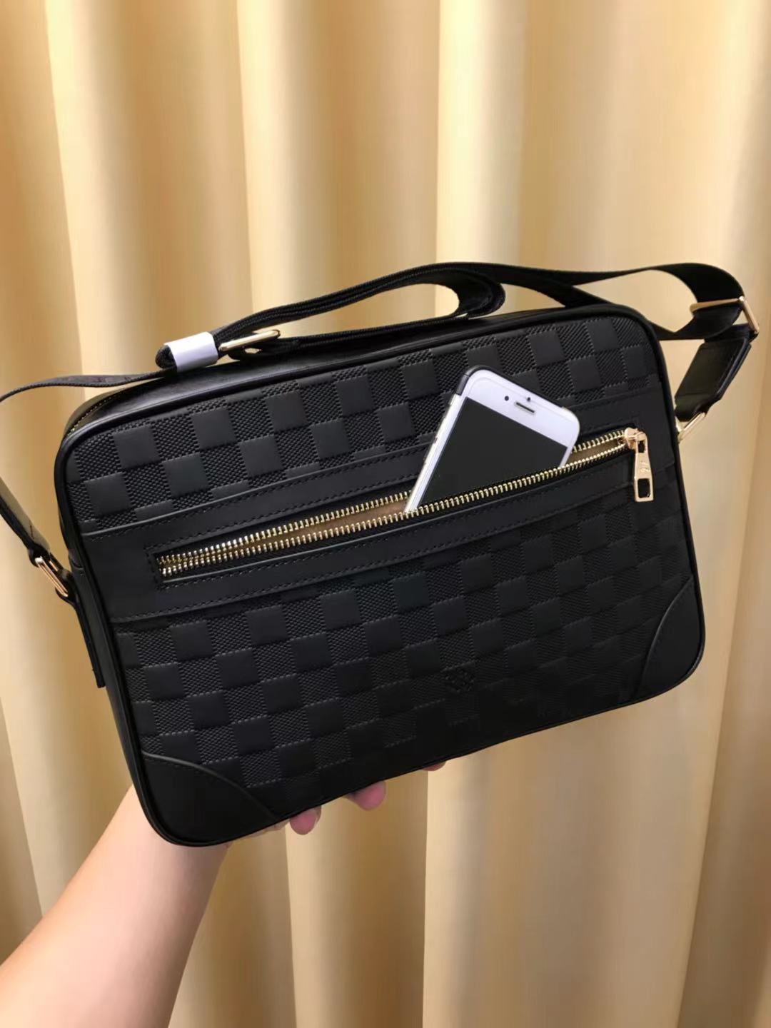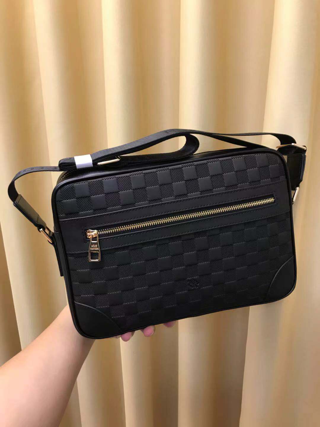 🕉推出火爆 斜挎包🌲原版牛皮压花🌲顶级货,🙀这款横挎包简单大方,超级实用,能放下A4纸,前幅有大拉链格,办公必备,回头率绝对百分百。做工精细,市场最高品质,没有之一,识货首选。尺寸:33*23*7,颜色:黑色 型号: 964-4.