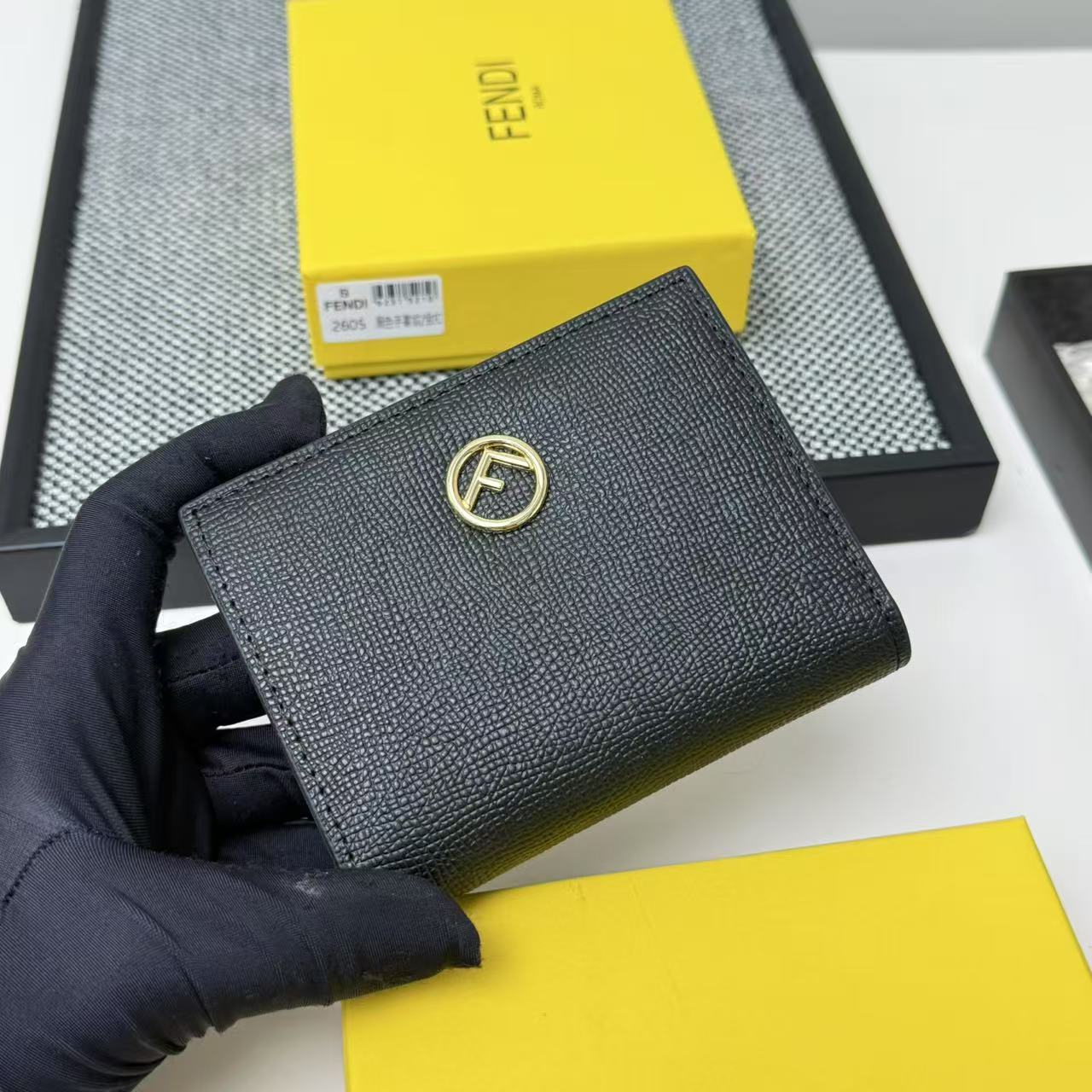 FENDI芬迪 F is Fendi 金标Logo双折翻盖 小牛皮 钱包卡包 女款 黑色,粉色,灰色,棕色,黑压花