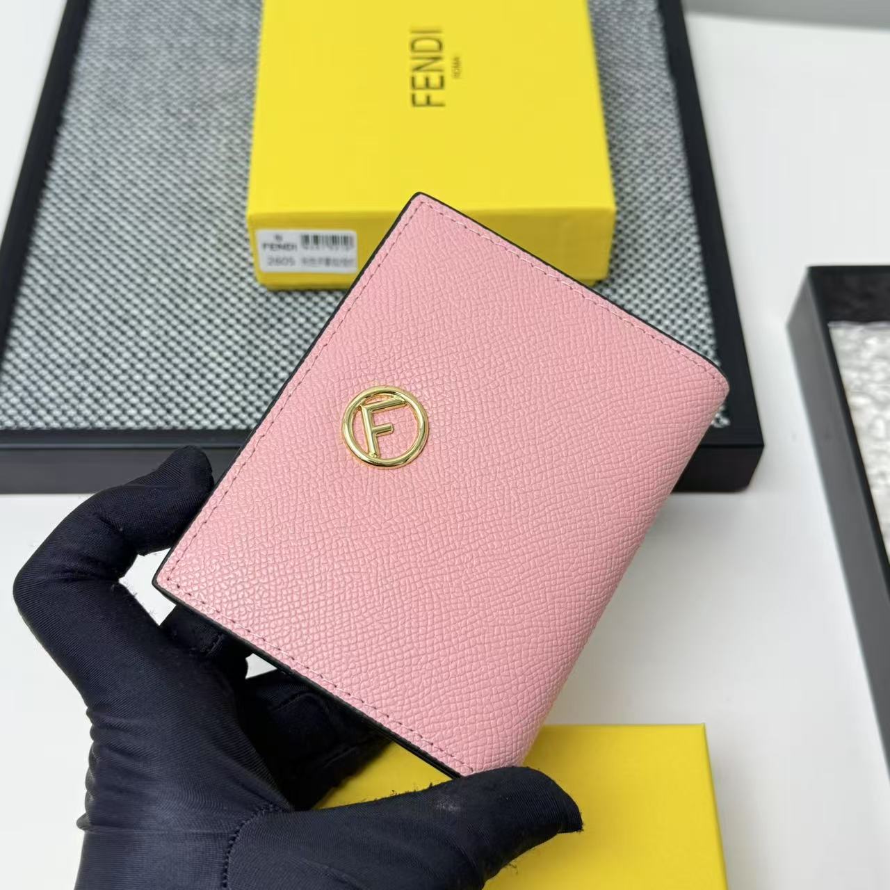 FENDI芬迪 F is Fendi 金标Logo双折翻盖 小牛皮 钱包卡包 女款 黑色,粉色,灰色,棕色,黑压花