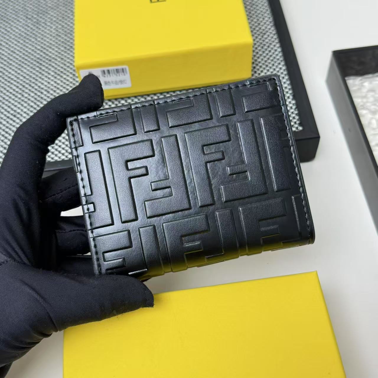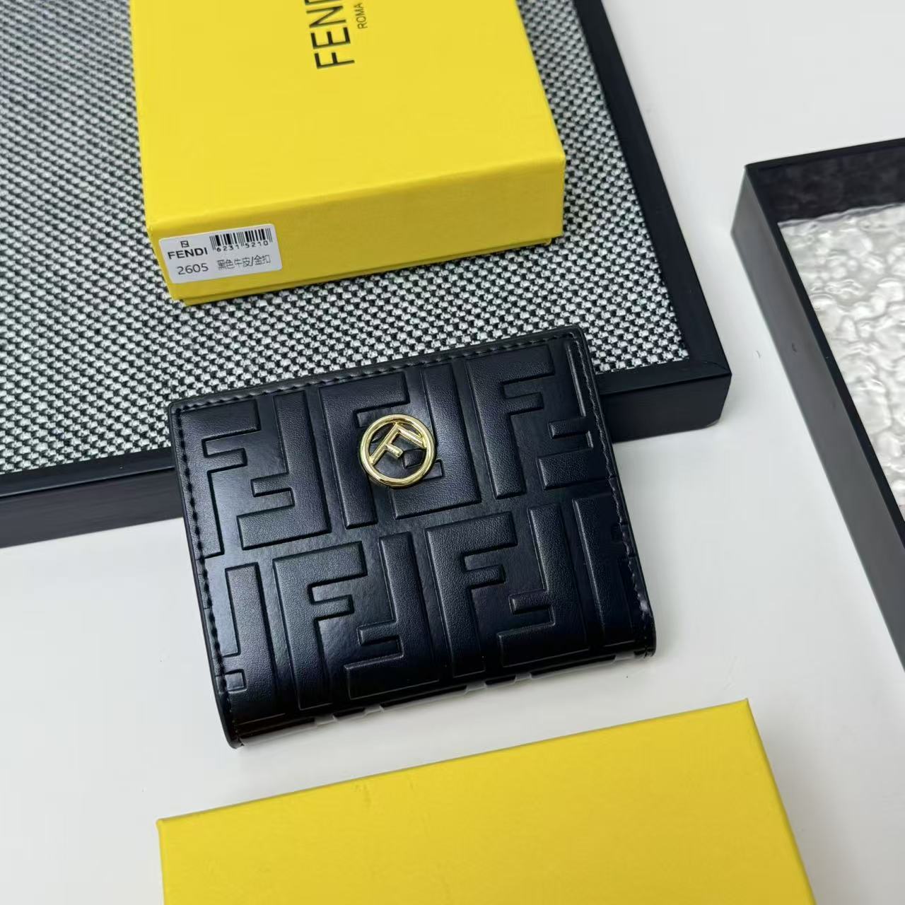 FENDI芬迪 F is Fendi 金标Logo双折翻盖 小牛皮 钱包卡包 女款 黑色,粉色,灰色,棕色,黑压花