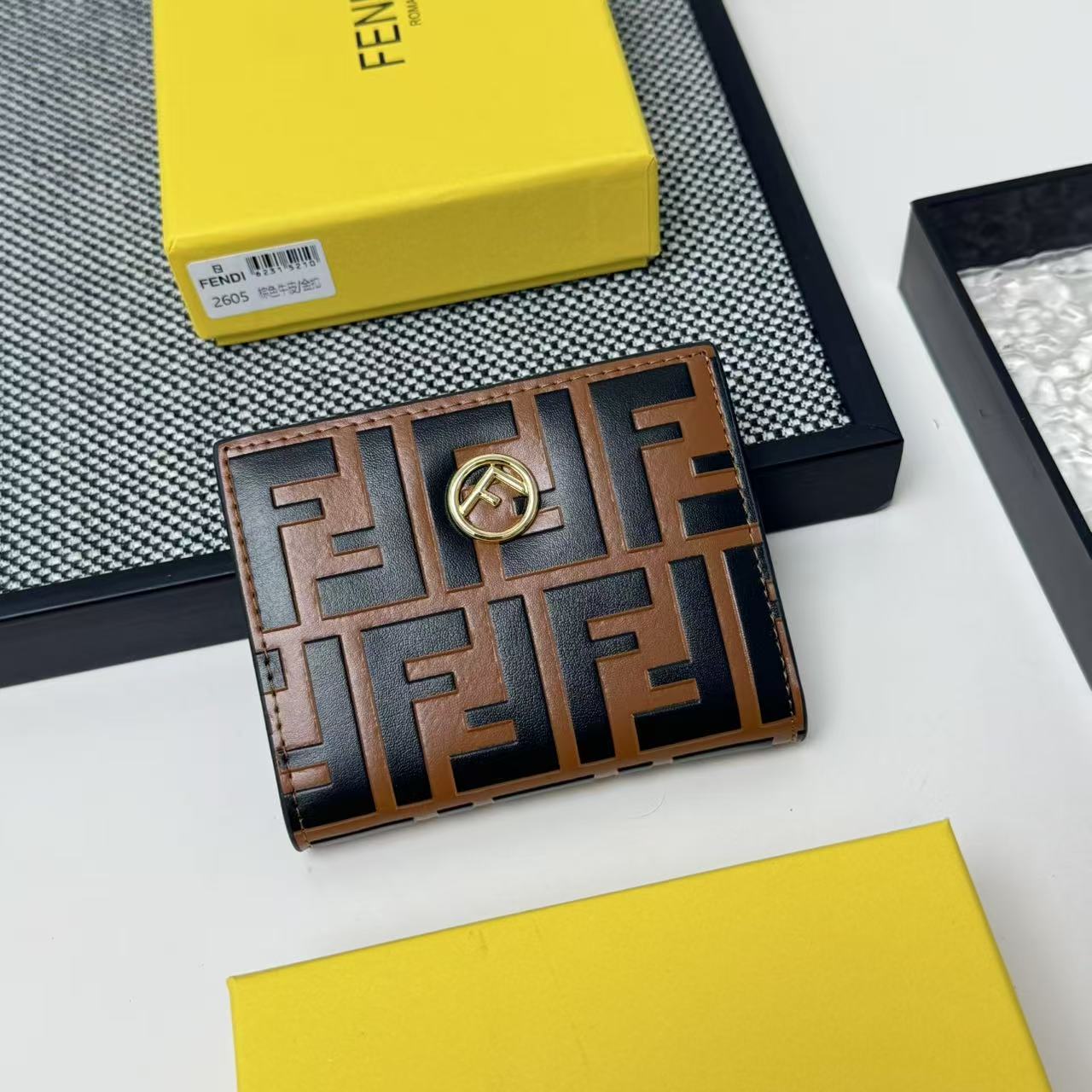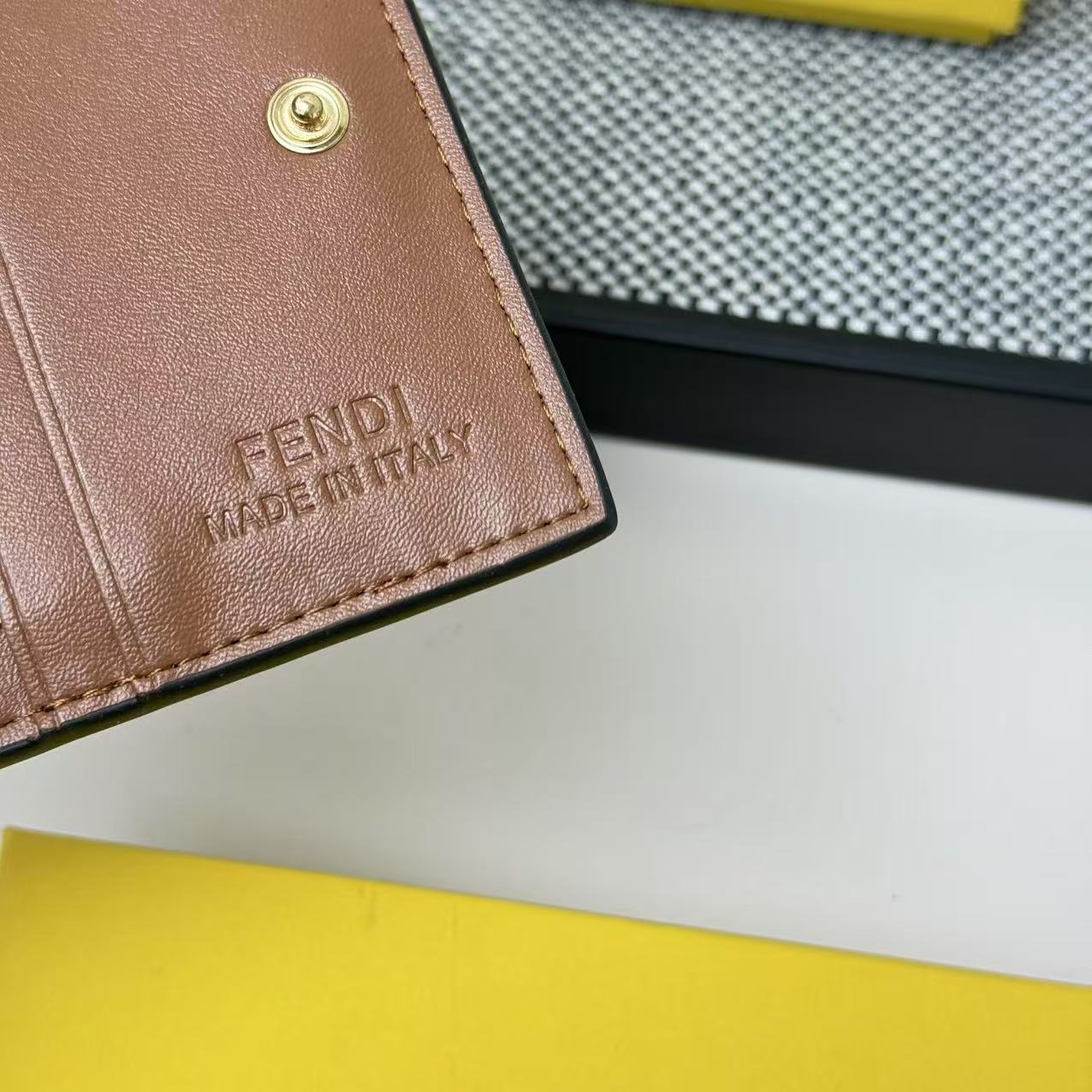 FENDI芬迪 F is Fendi 金标Logo双折翻盖 小牛皮 钱包卡包 女款 黑色,粉色,灰色,棕色,黑压花