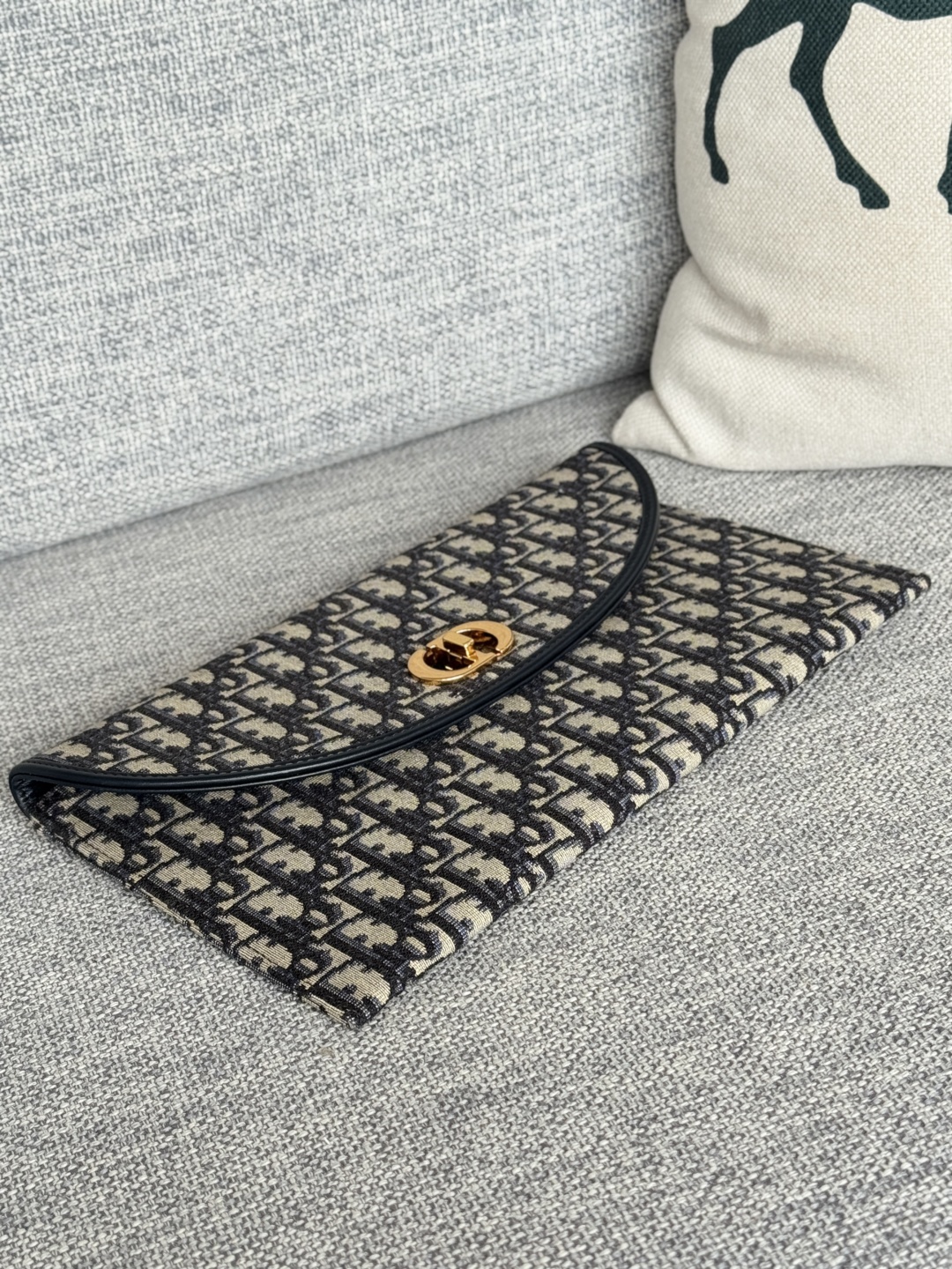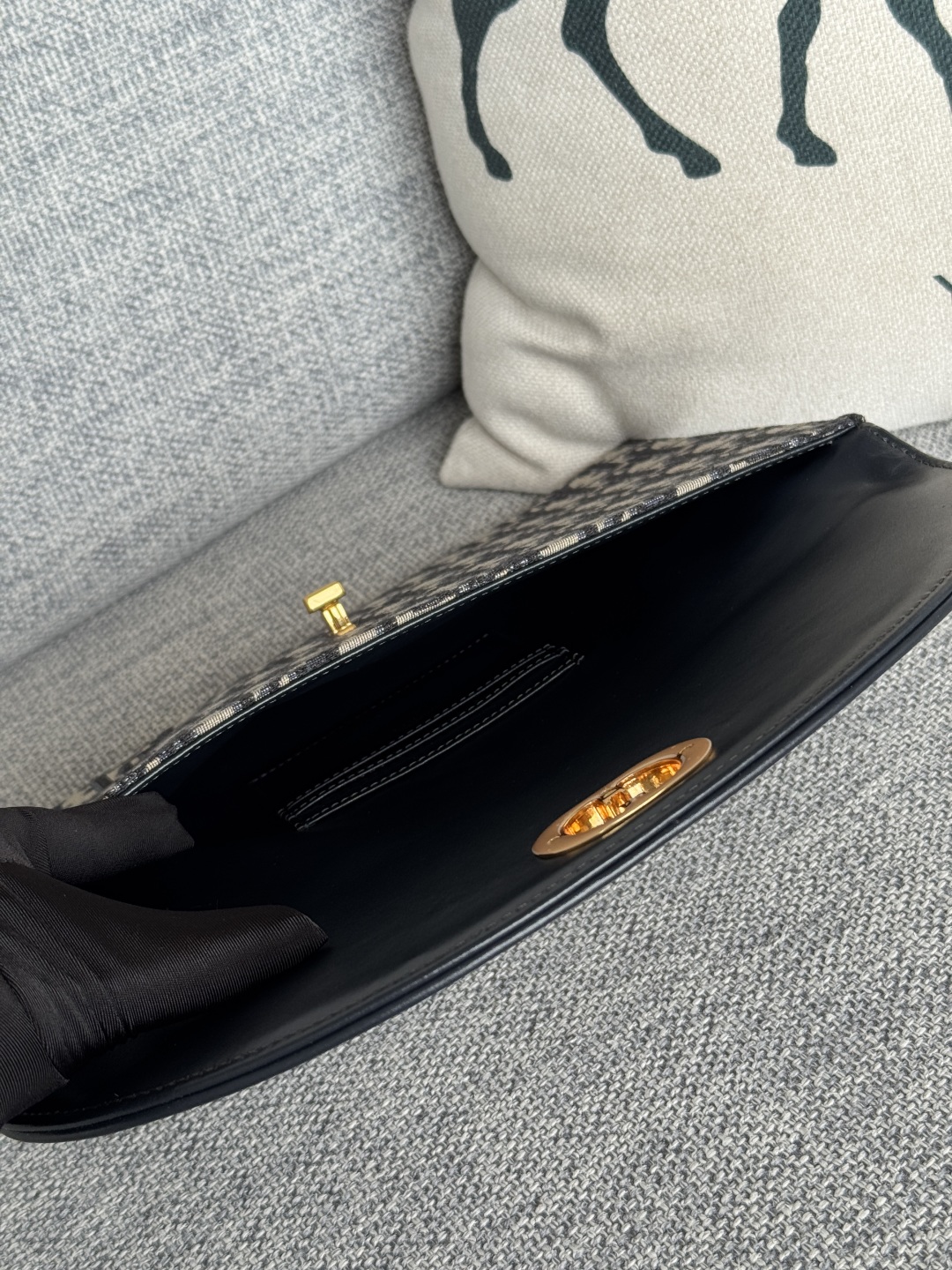 30 Montaigne系列翻盖手拿包,采用经典Oblique 老花面料精心制作,饰以其同名系列的经典标识,包括翻盖上的金色饰面金属旋钮式字母扣环,满满的复古气息,旅行使用既轻便又百搭 size:30*2*18cm