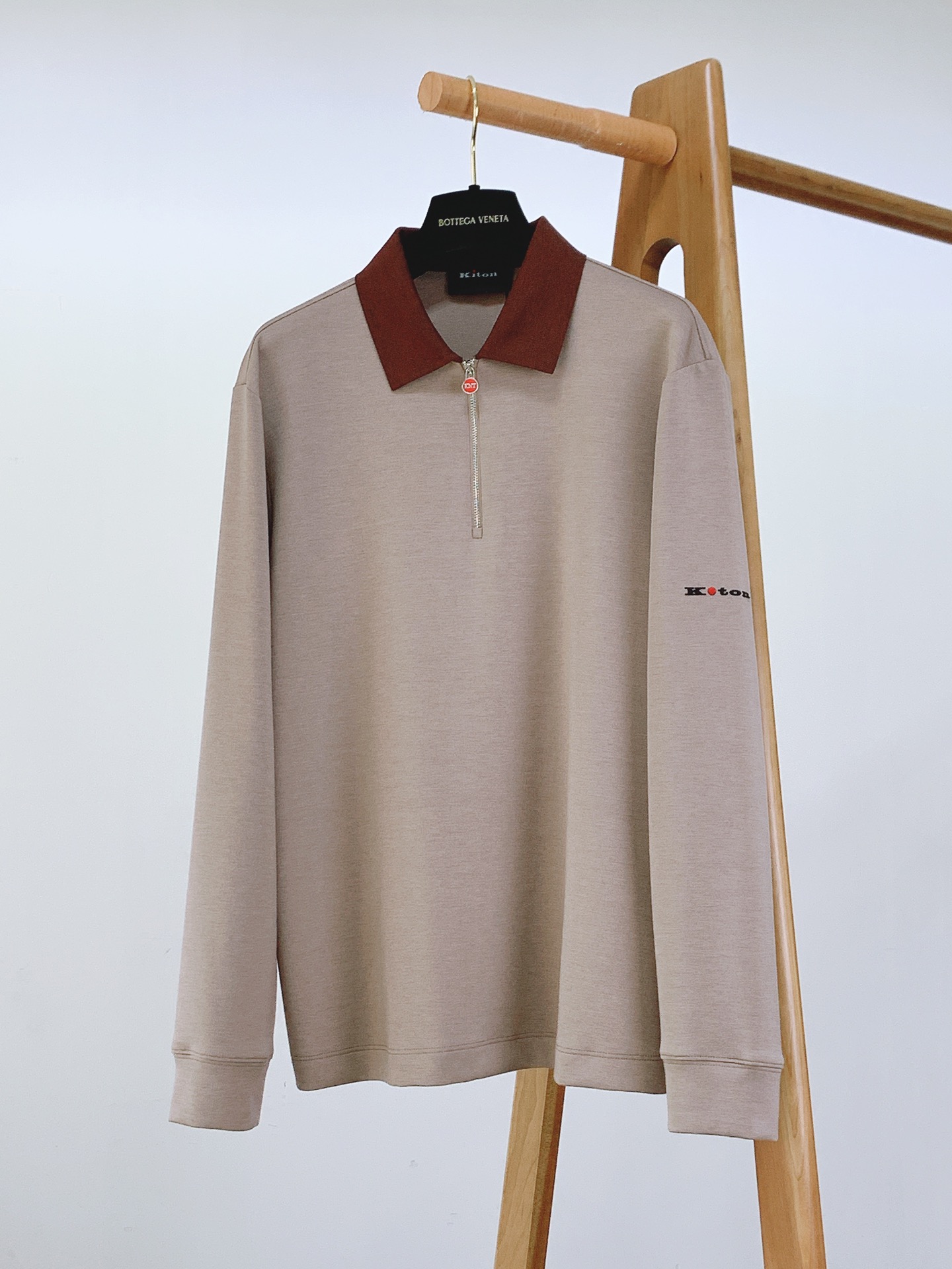 撞色领型利落有型,半拉链设计暗藏巧思——红标KNT五金拉头,是意式奢品的身份印记;细腻面料亲肤如第二层肌肤,却又有着挺括的高级质感。袖臂精致刺绣与“K NAPOLI”标识,处处彰显手工匠造的细节偏执。
