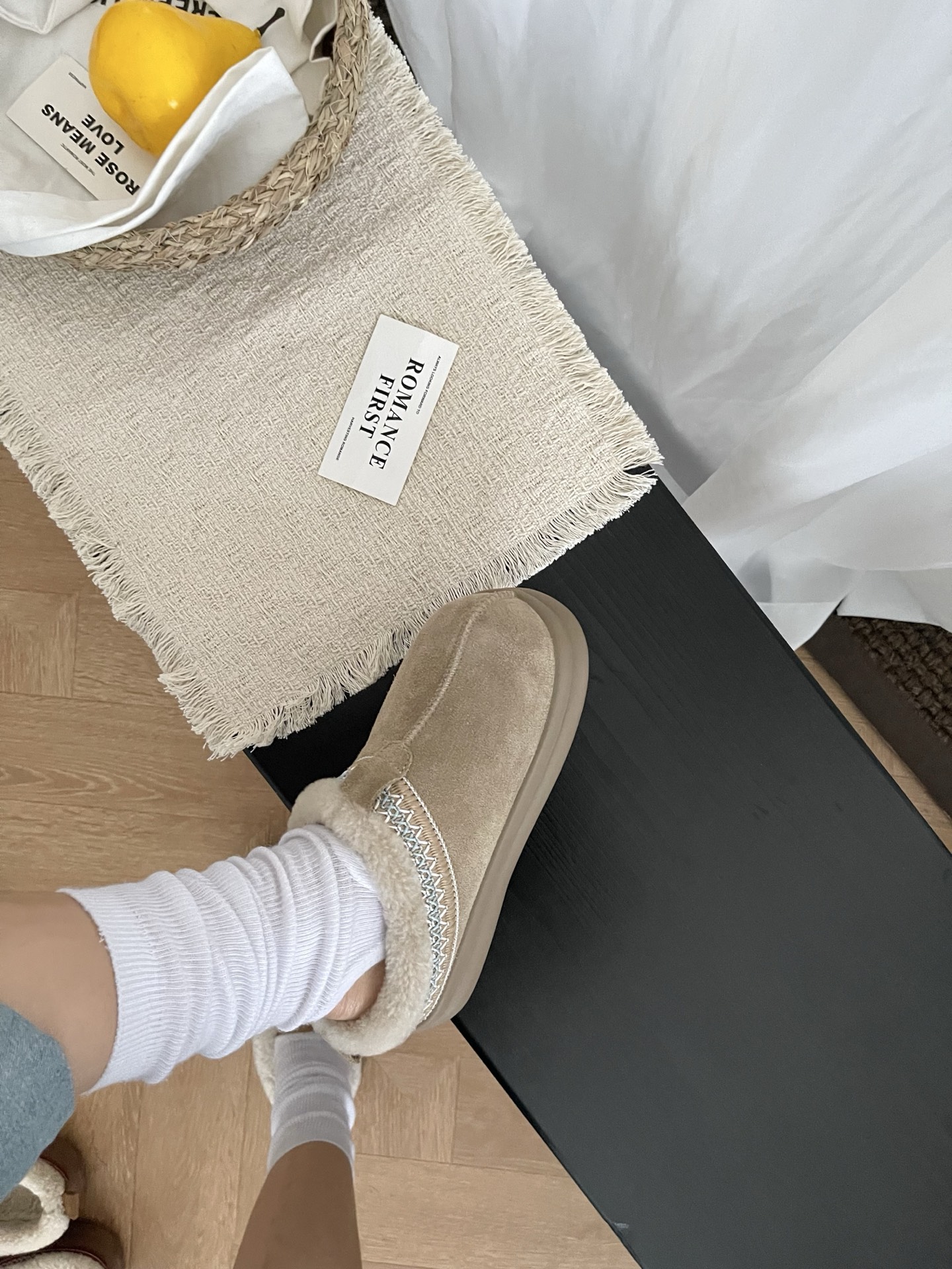 毛茸茸的羊毛内里,软乎乎超治愈,一踩进去,温暖从脚尖直抵心窝~